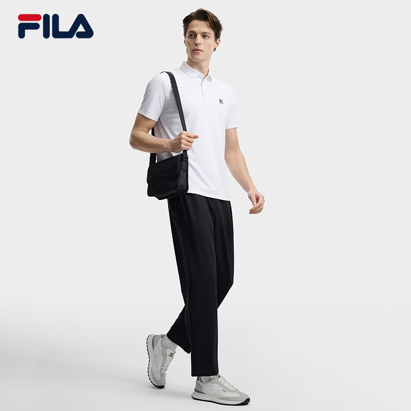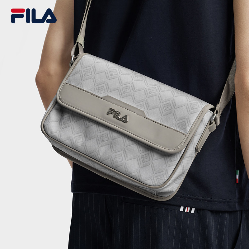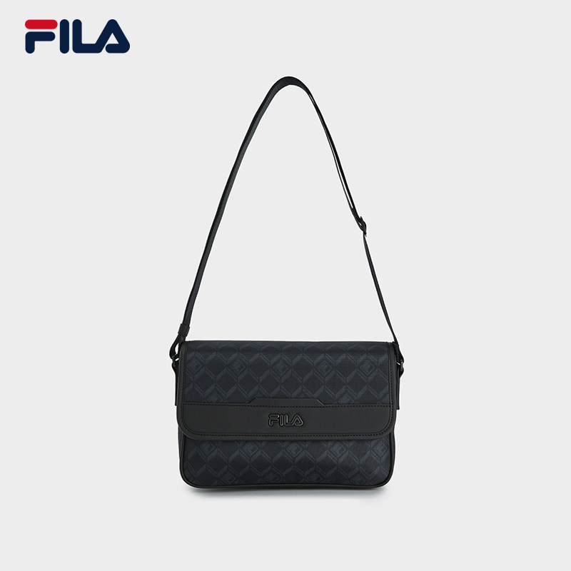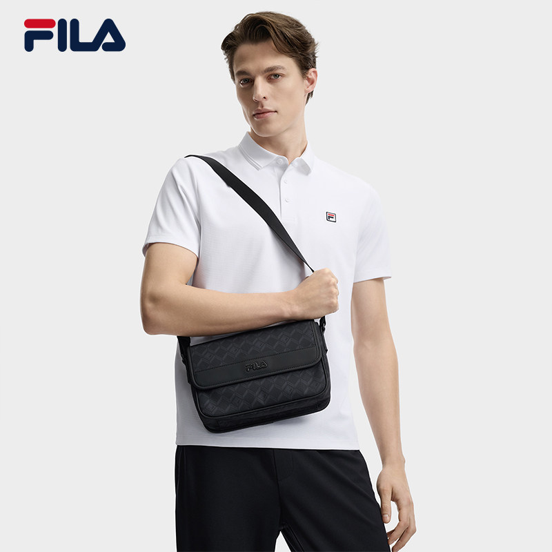 黑武士挎包|FILA 斐乐官方男包老花夏季新款翻盖单肩包隔层斜挎包