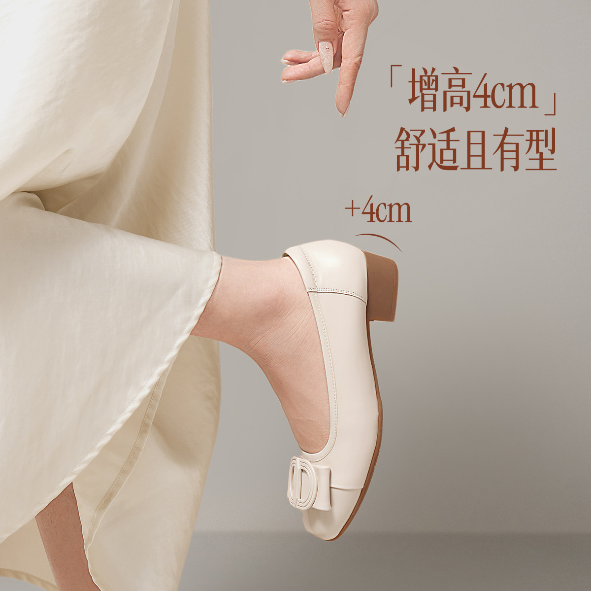 【明星同款|静音系列】千百度练习曲裸色高跟鞋真皮通勤法式单鞋