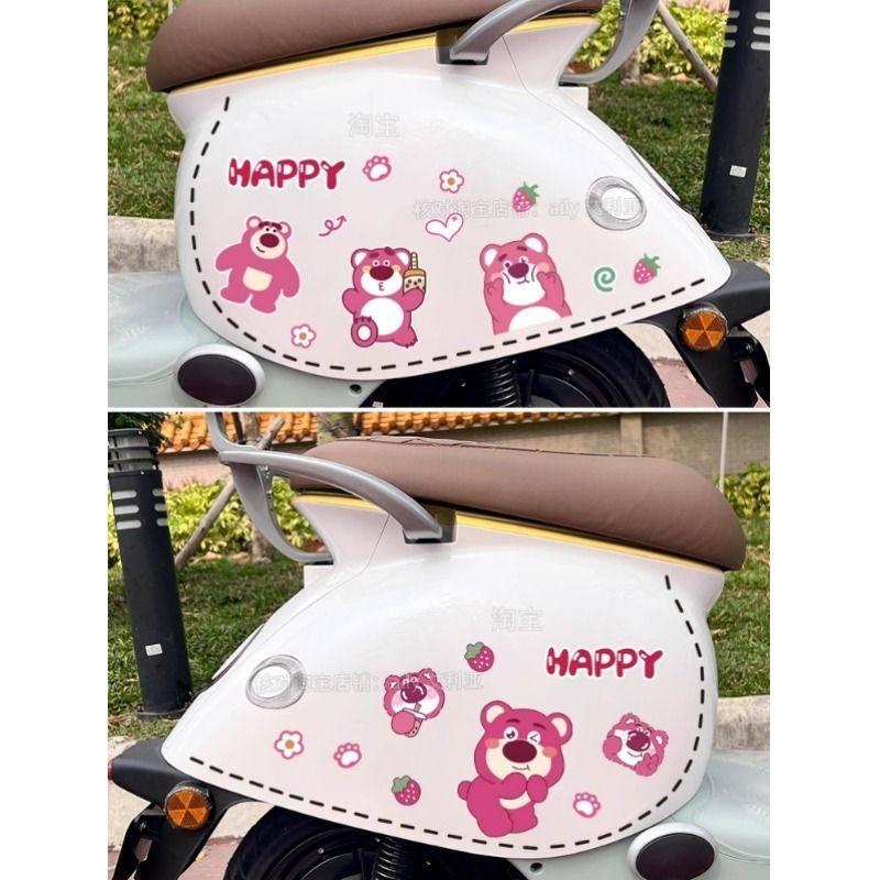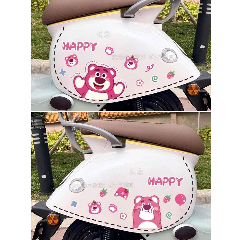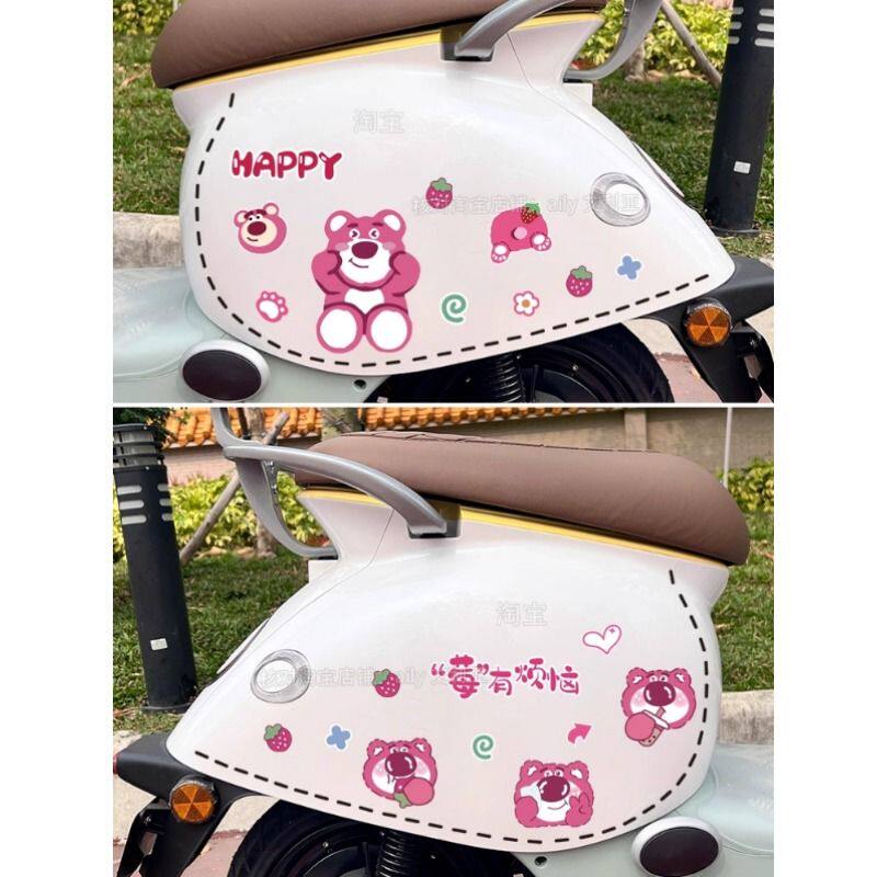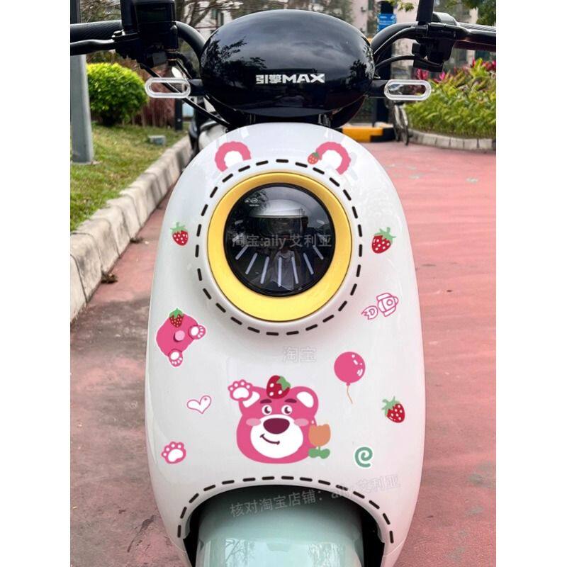 电动车贴纸可爱草莓熊迪士尼卡通装饰摩托车雅迪爱玛晴天防水无痕
