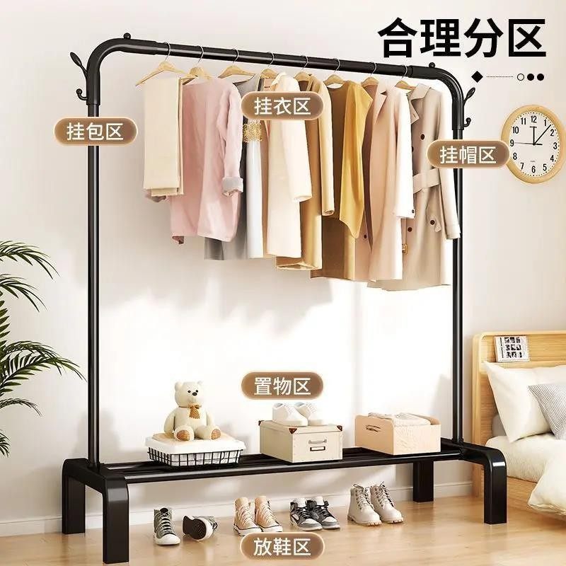 晾衣架落地家用简易室内多功能挂衣架卧室加粗稳固省空间衣帽架子