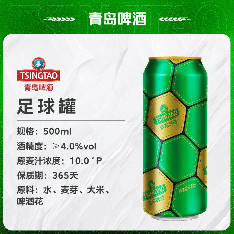 青岛啤酒经典超值推荐足球罐系列500ml*12听*2箱整箱包邮