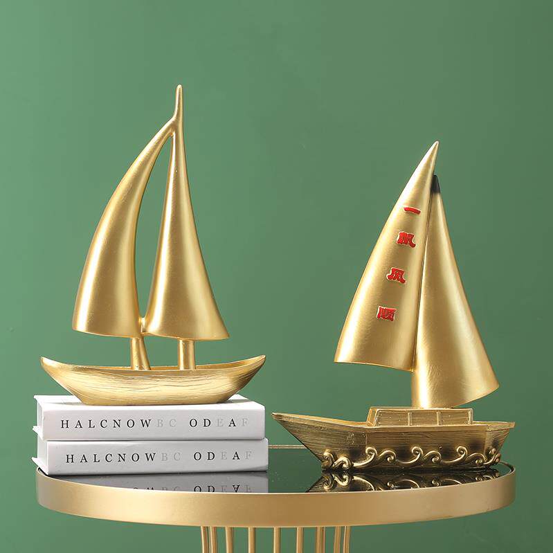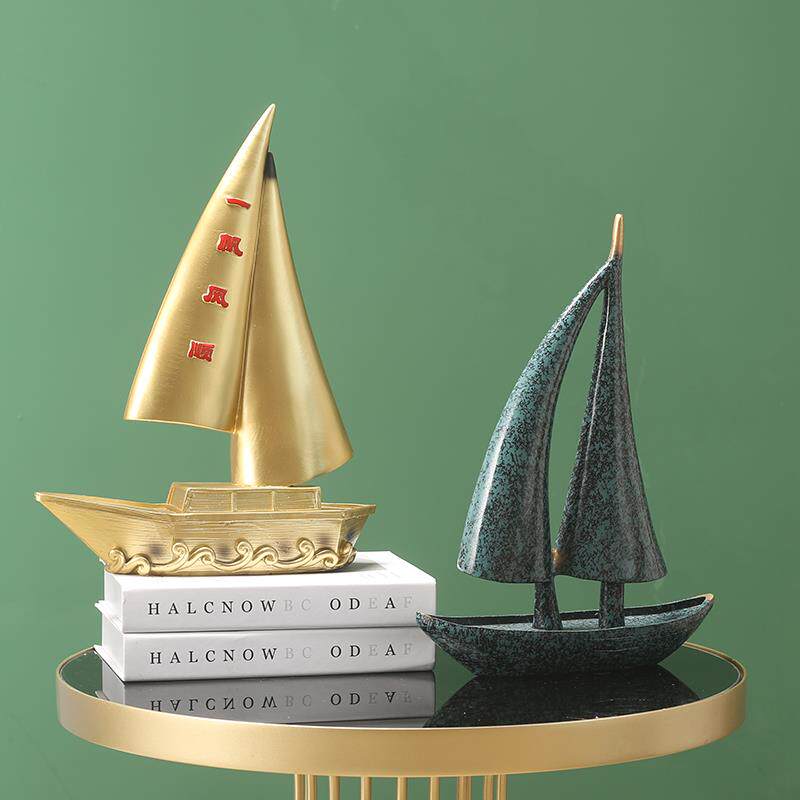 一帆风顺帆船新中式轻奢摆件玄关柜餐边柜酒柜书柜软装装饰品