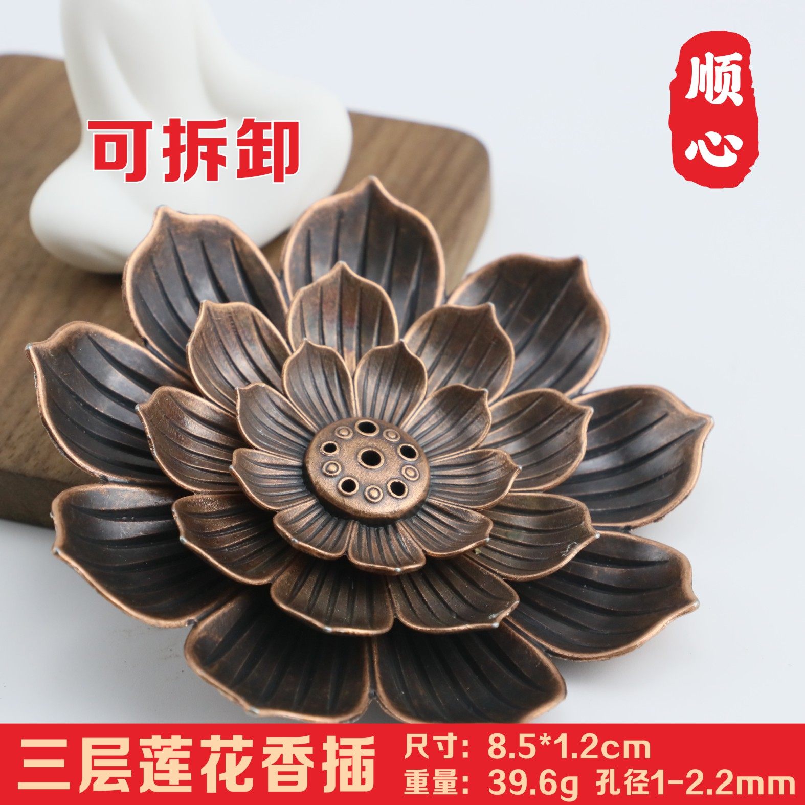 线香香座创意香插底座莲花香盘线香炉檀香熏香底托茶摆件黄铜九孔