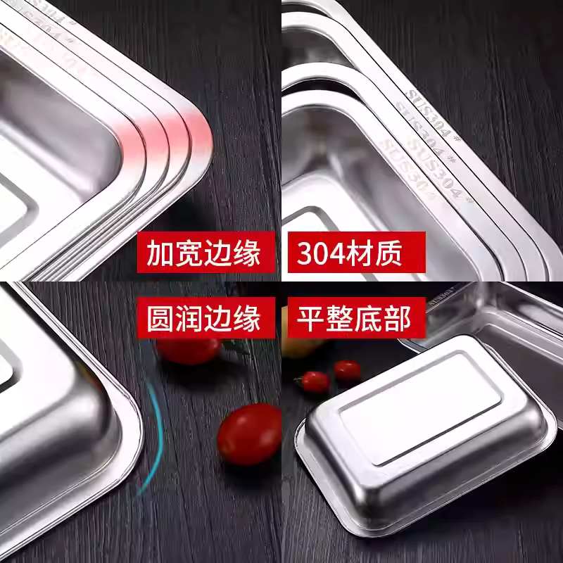 加厚不锈钢方盘烤鱼盘快餐盘带磁410蒸饭蒸鱼盘平底托盘烧烤盘