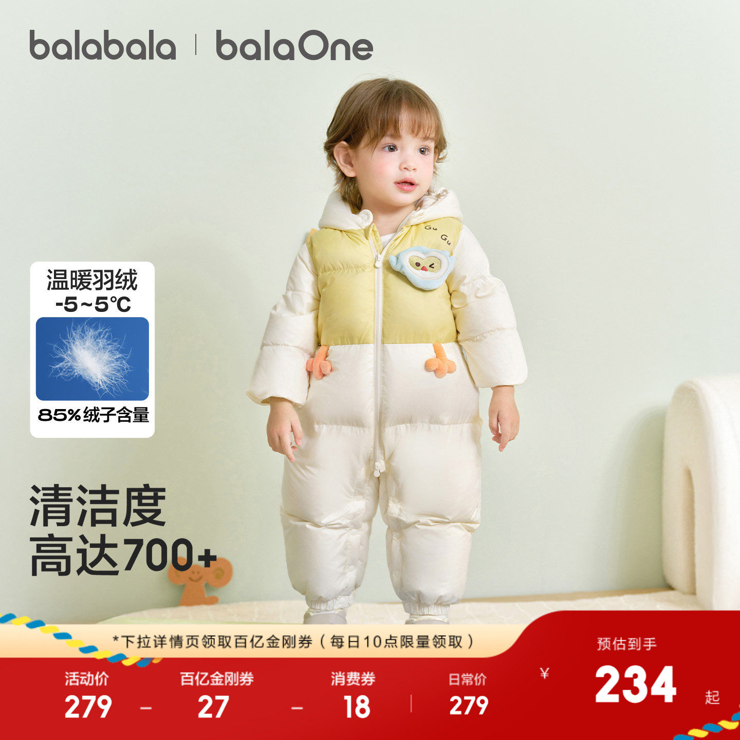 巴拉巴拉balaOne婴儿羽绒服连体衣2025新款宝宝冬装哈衣爬服时尚
