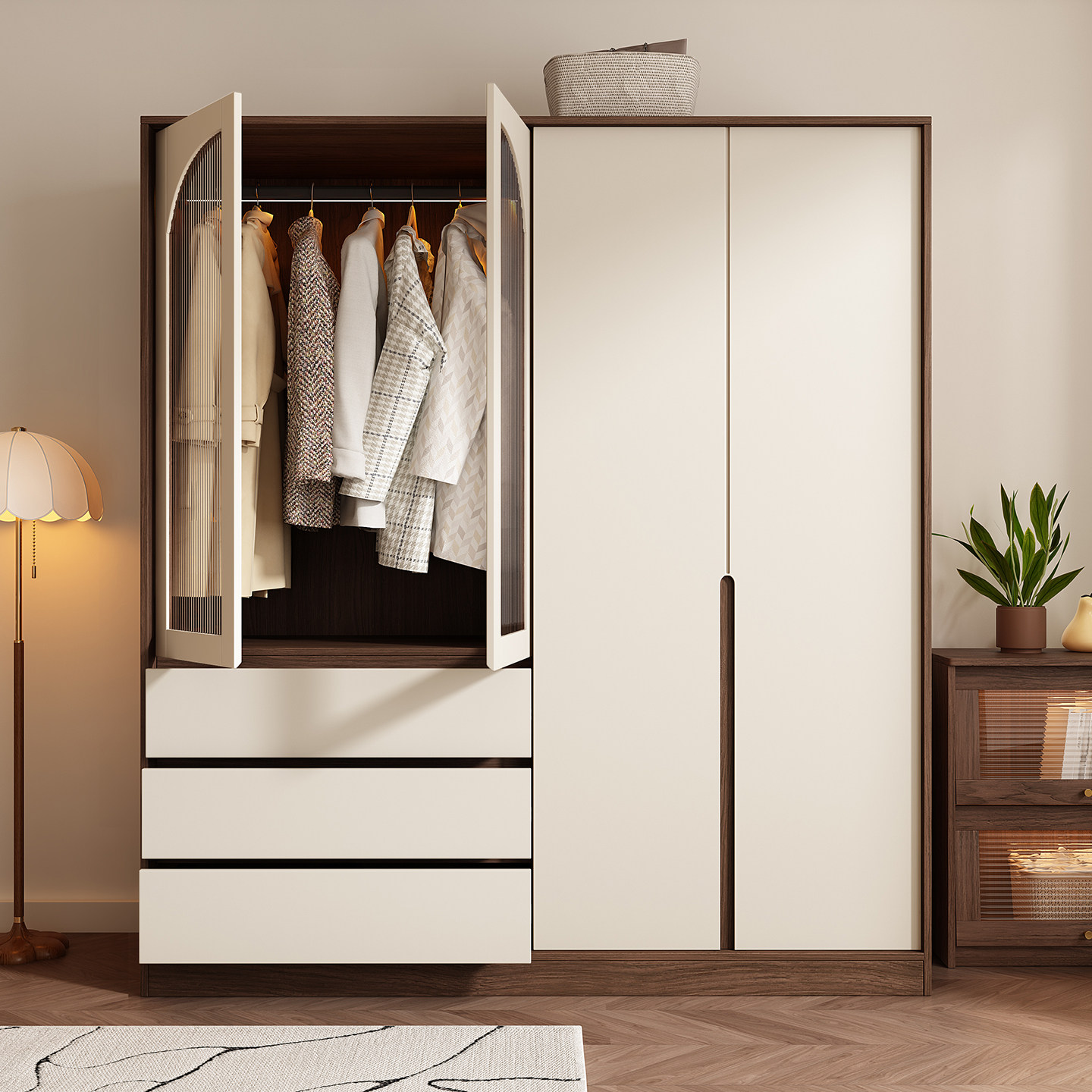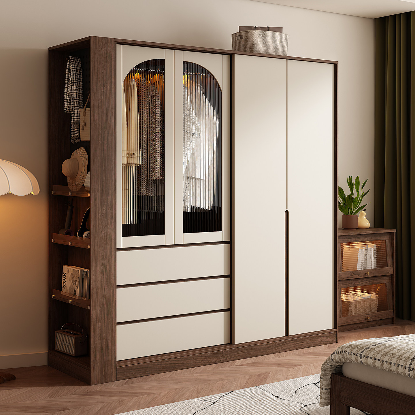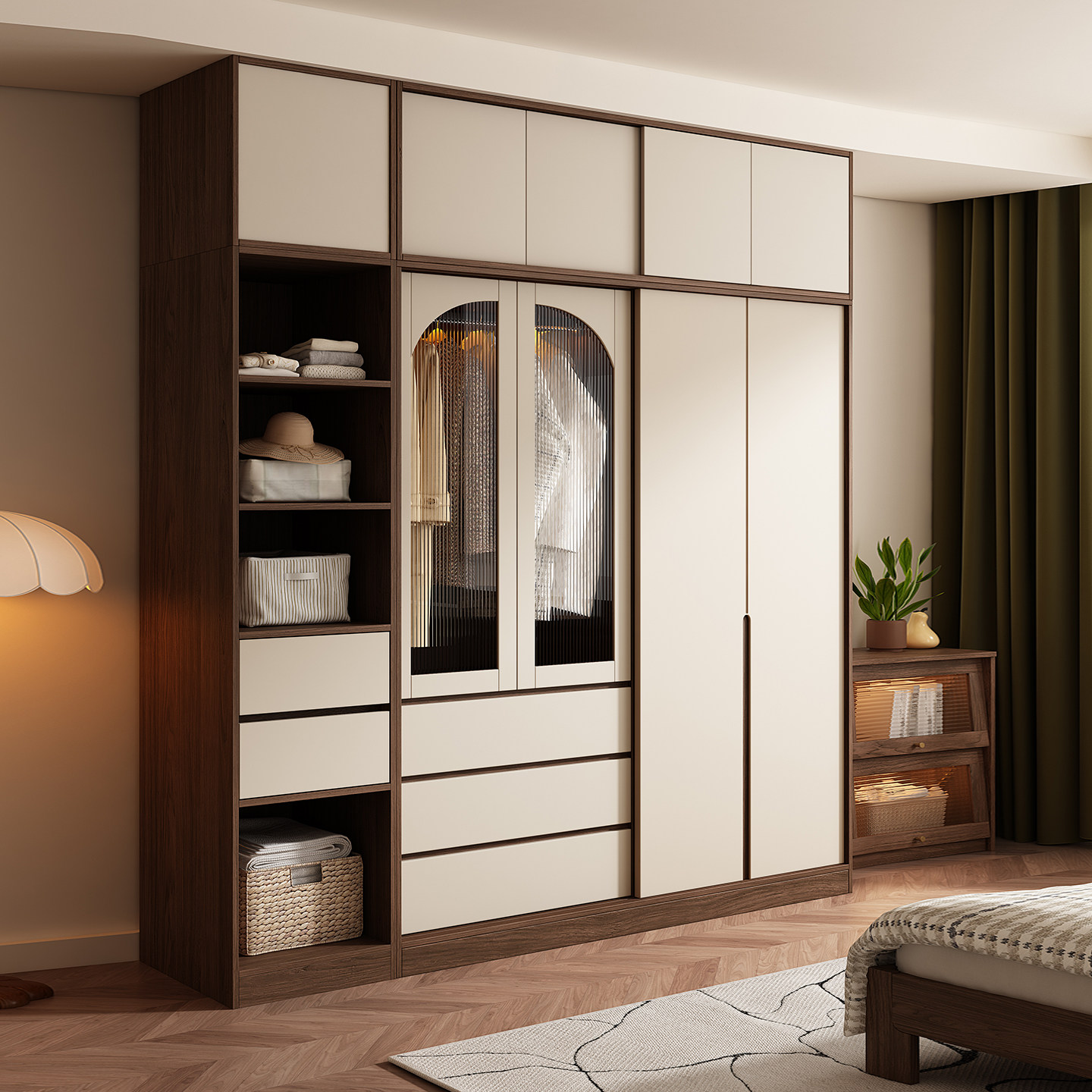 木兜家具山川衣柜黑胡桃色中古风复古推拉门衣柜卧室家用实木衣橱