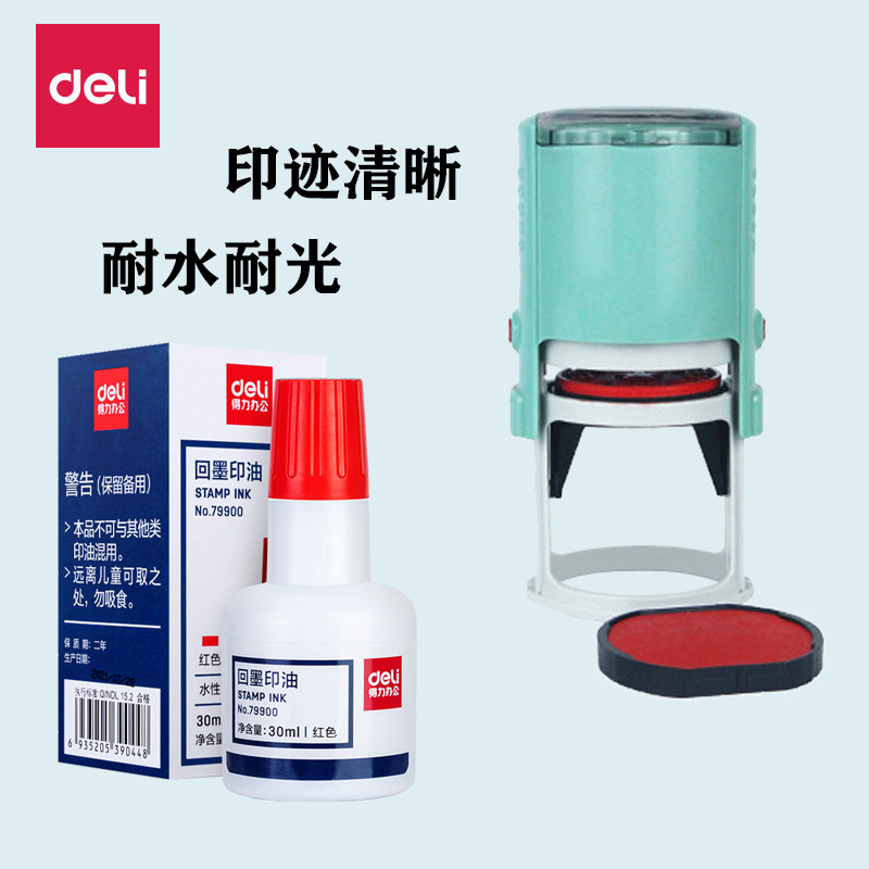 得力回墨印油【水性】速干翻转回墨印章专用印油墨水红蓝黑色会计合同发票办公章专用印台填充补充液印油快干