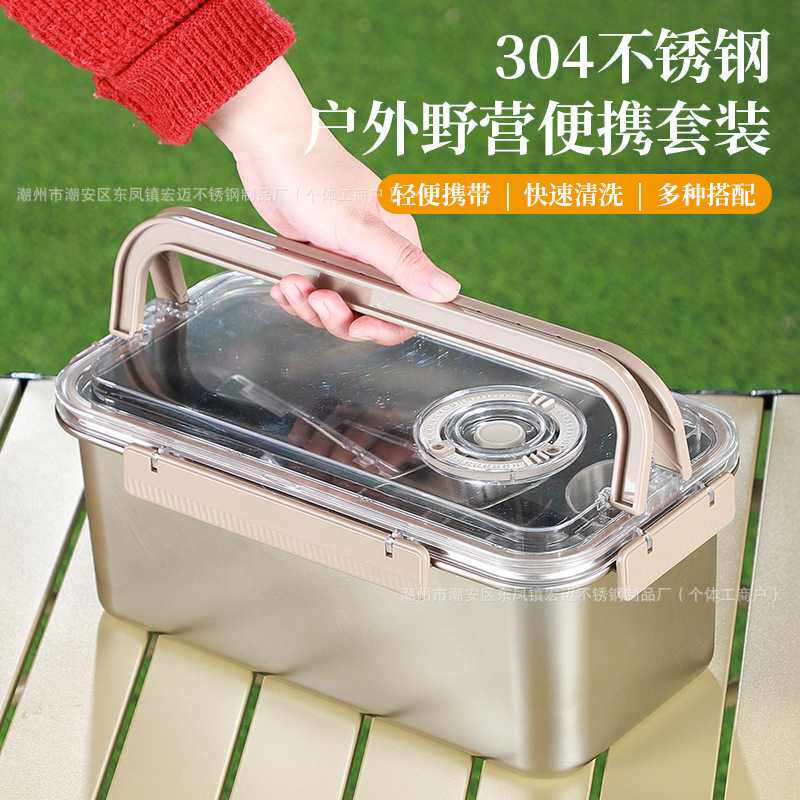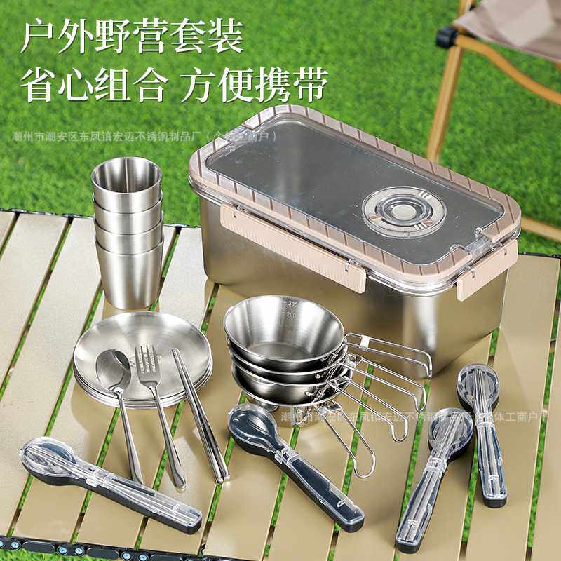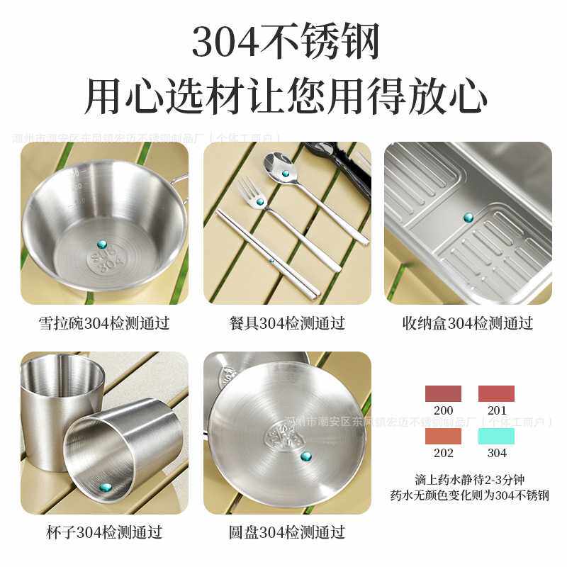 304不锈钢户外旅行餐具便携式露营用品野炊装备野餐碗盘筷勺套装