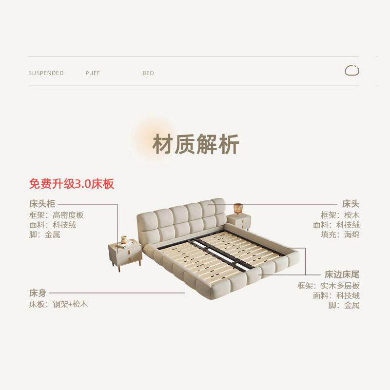 意式泡芙悬浮床现代简约主卧室大床双人奶油风布艺婚床