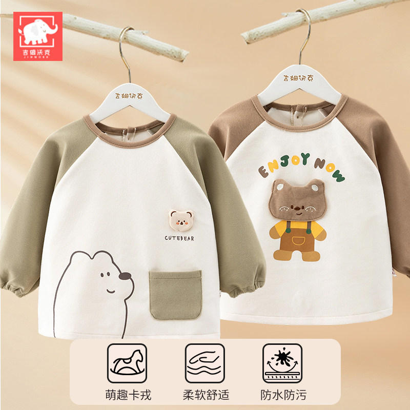 宝宝儿童罩衣秋冬季外穿洋气男孩吃饭围兜围裙防水女婴儿防脏护衣