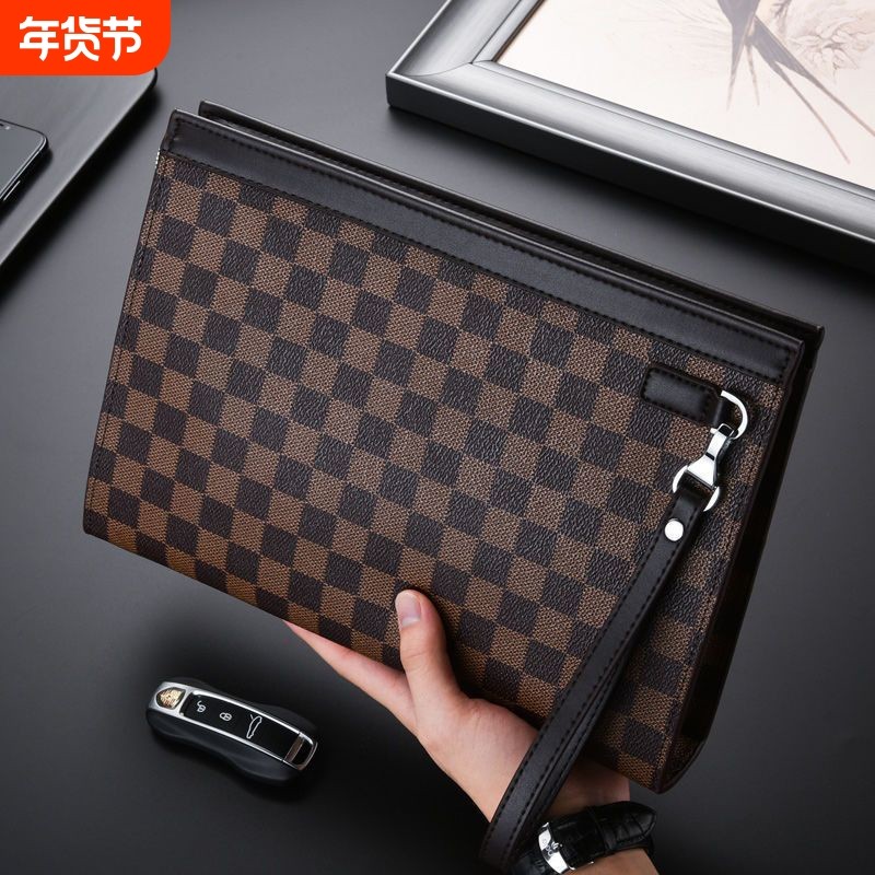 新款男士手拿包LPVC大牌手包男休闲大容量手抓包潮男棋盘格子夹包