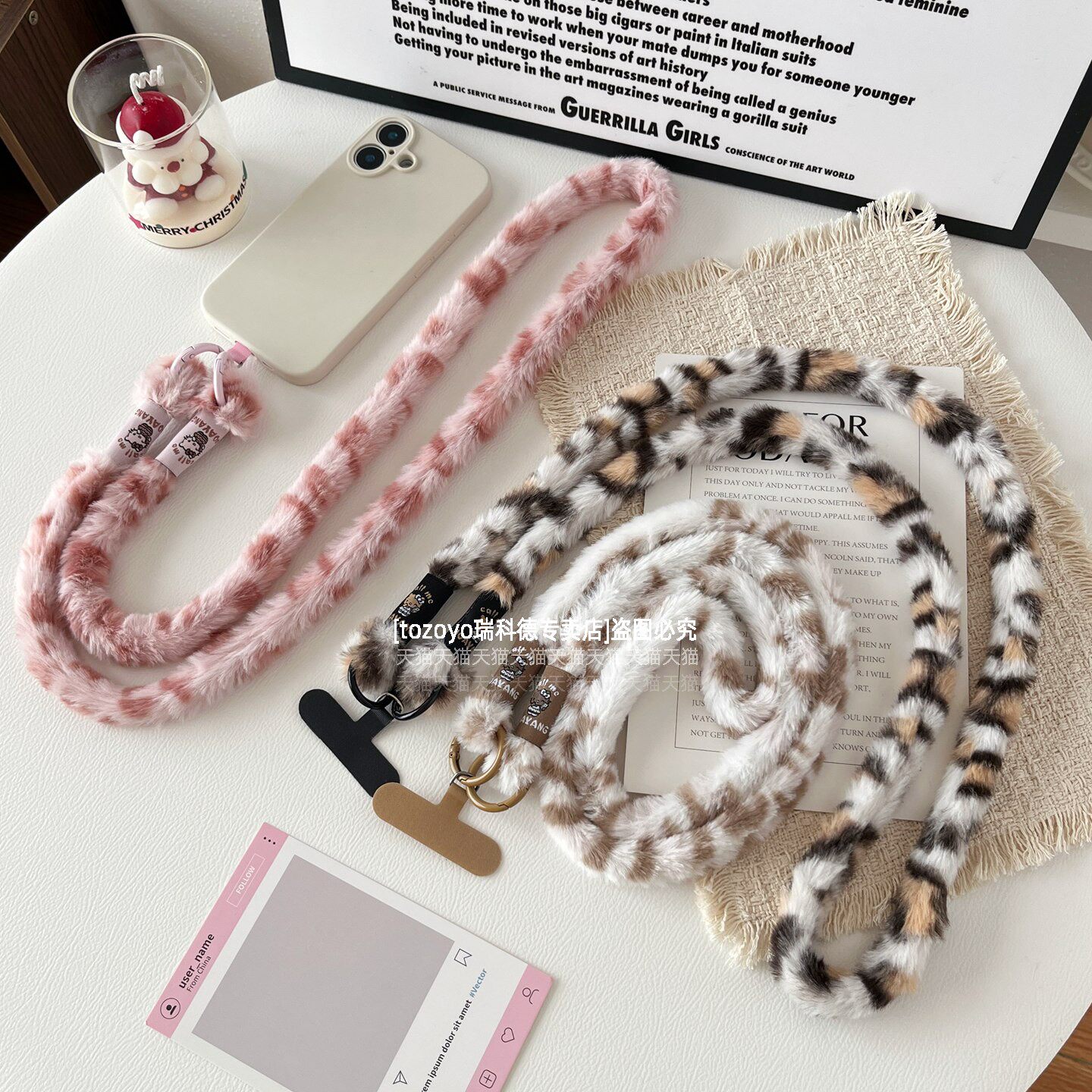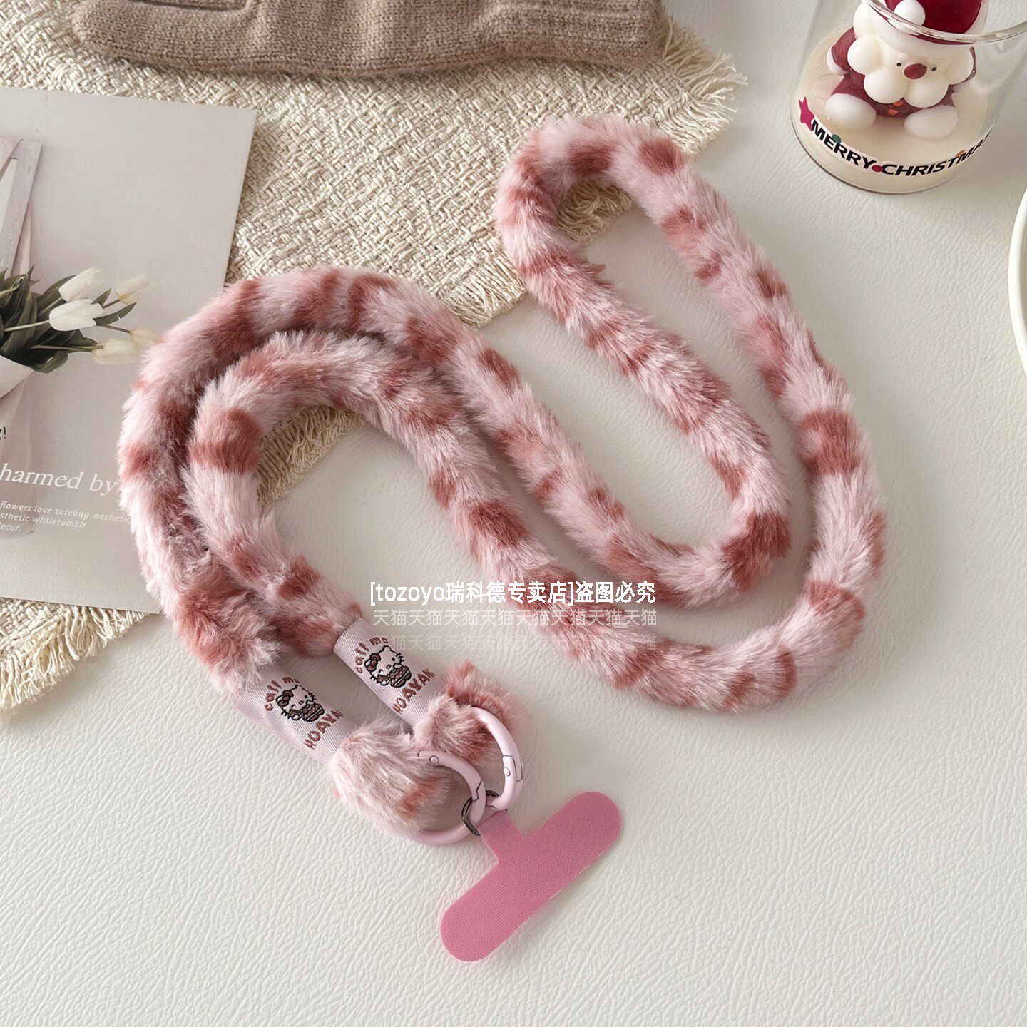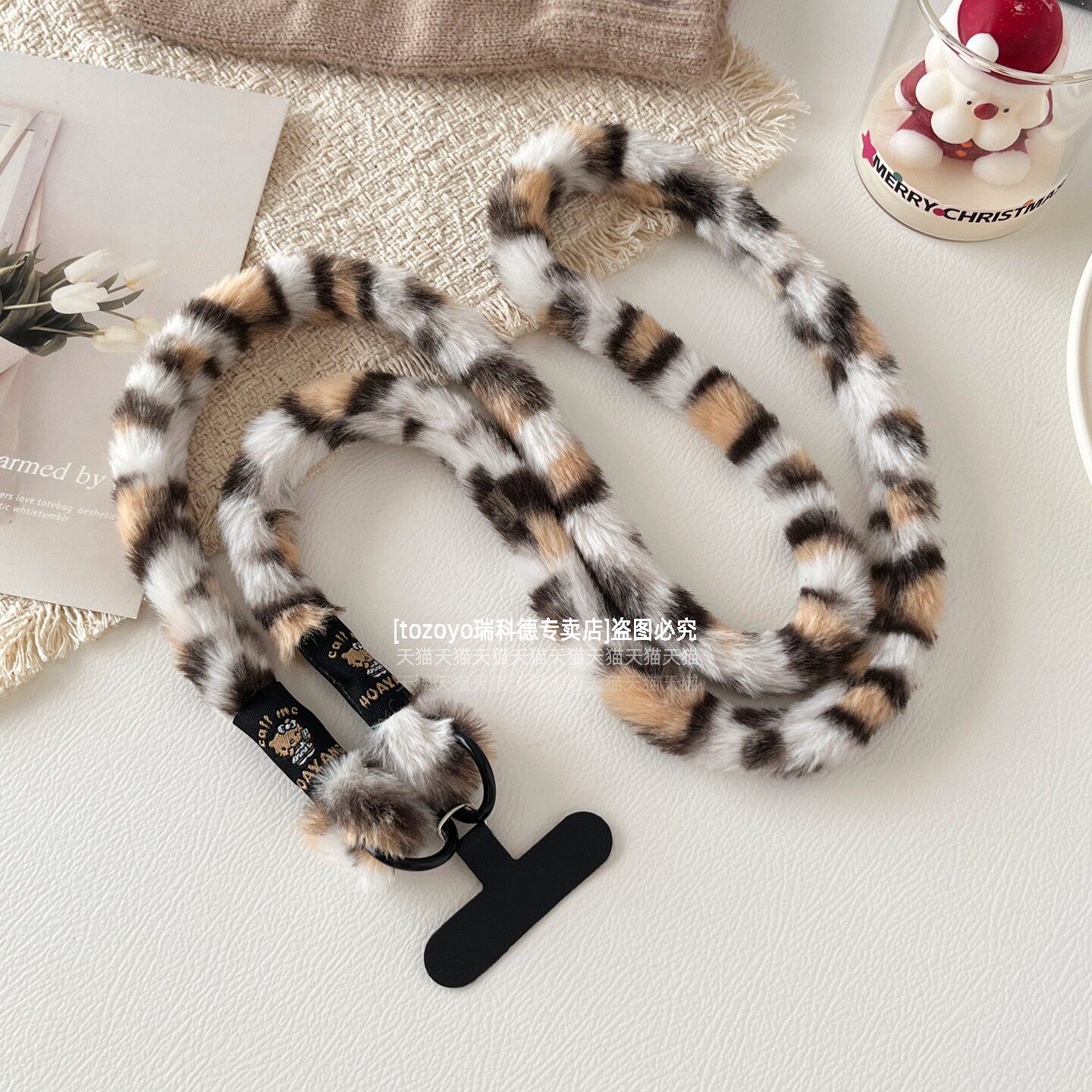 TOZOYO毛绒豹纹手机斜挎挂绳链挂件ins冬季氛围感背带防摔绳子可背斜背毛茸茸肩带女高级感新款垫片挂饰包壳