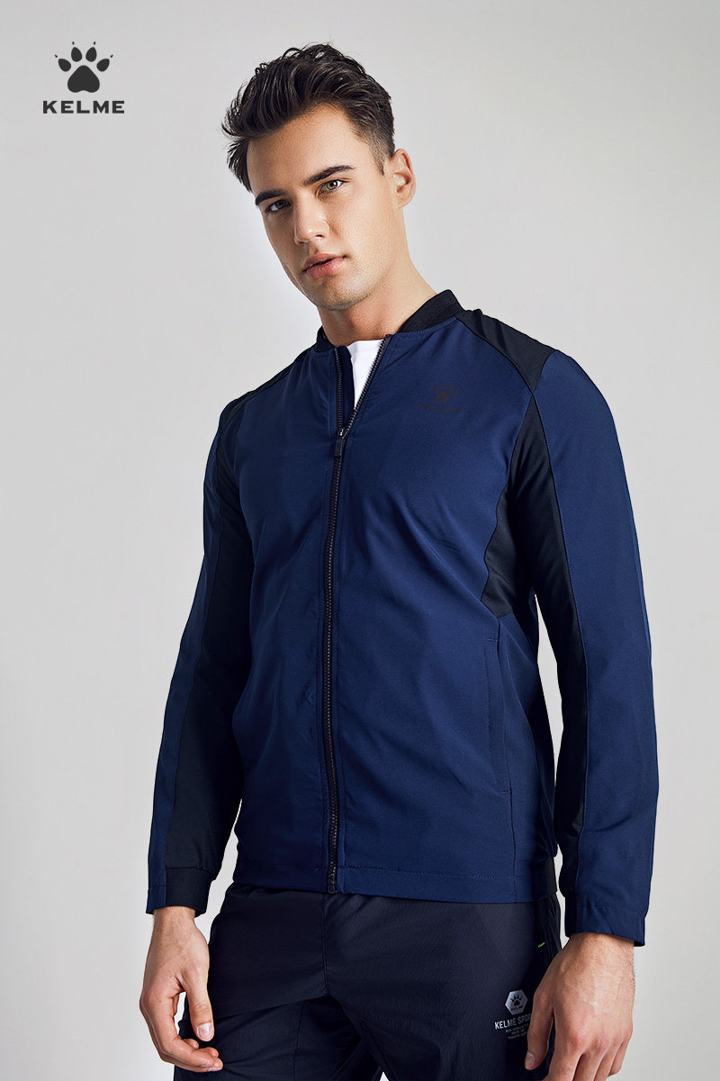 KELME卡尔美官网运动夹克男跑步足球训练外衣拼接黑色休闲运动服