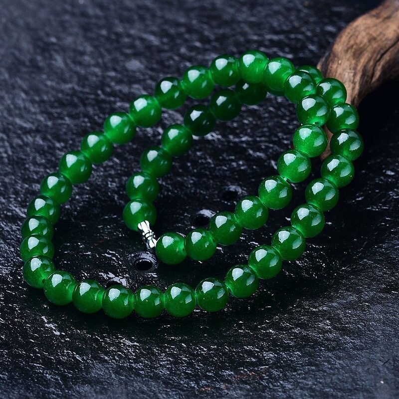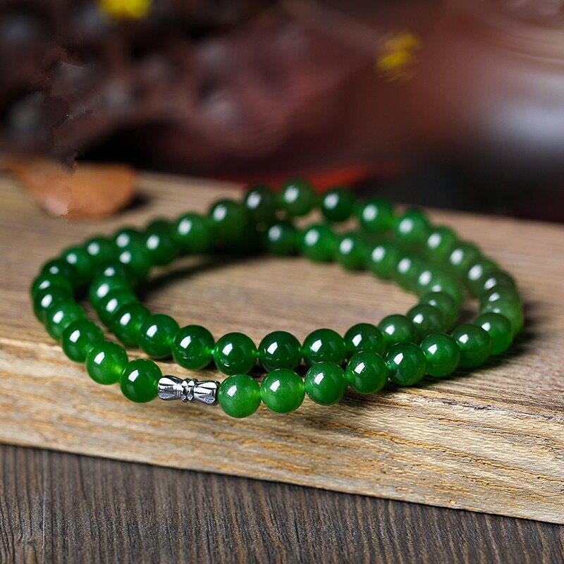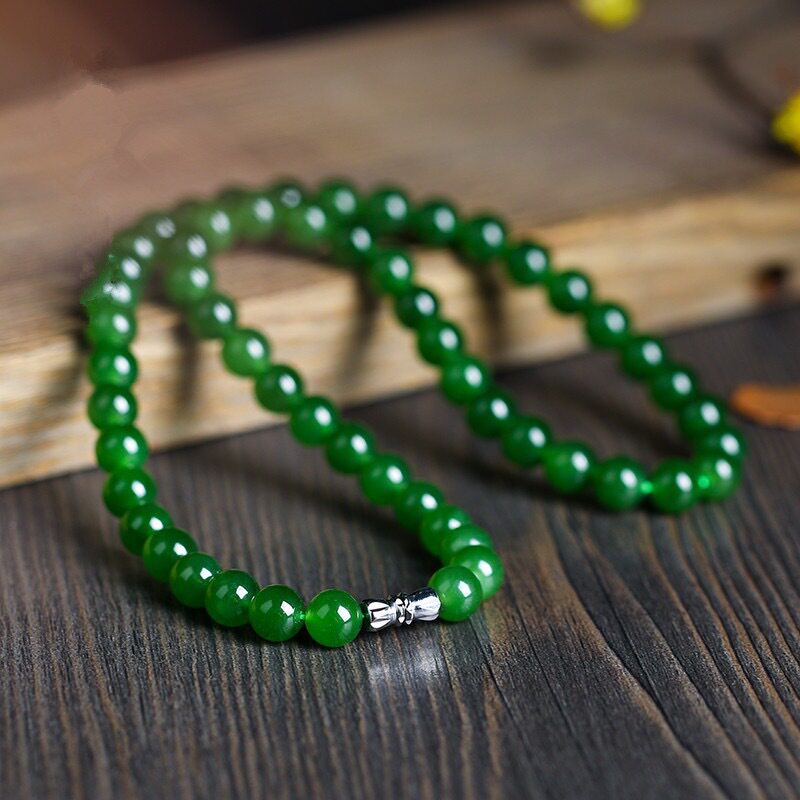 天然和田玉碧玉项链女士新中式国风碧玉简约经典圆珠锁骨链礼物