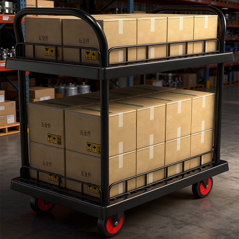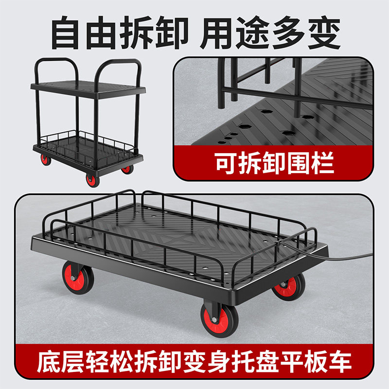 双层平板手推车带围栏搬运车拉货小推车摆摊拖车静音仓库搬运车