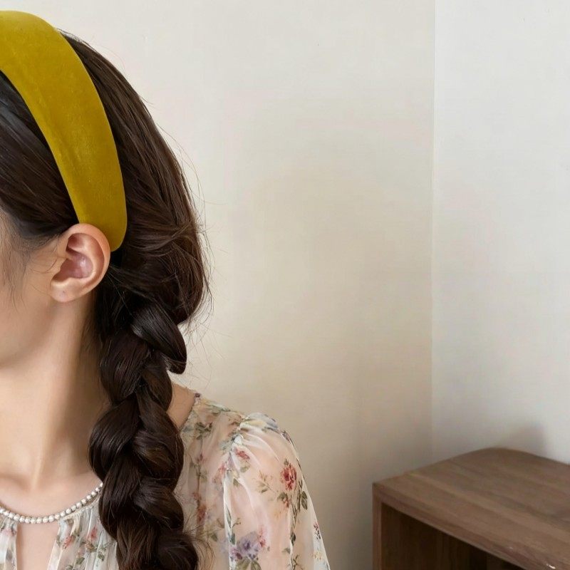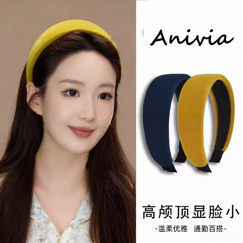 温柔丝绒黄色海绵发箍女2025秋冬新款高颅顶头箍不勒头显脸小发卡