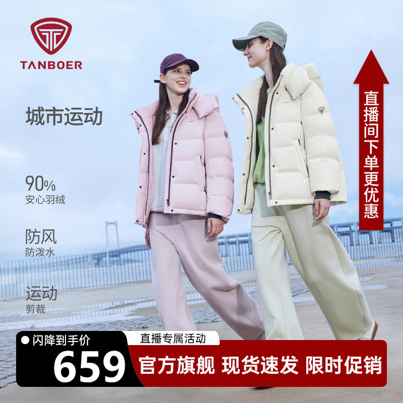 坦博尔运动羽绒服女2025冬季短款新款宽松可脱卸帽帽面包爆款外套
