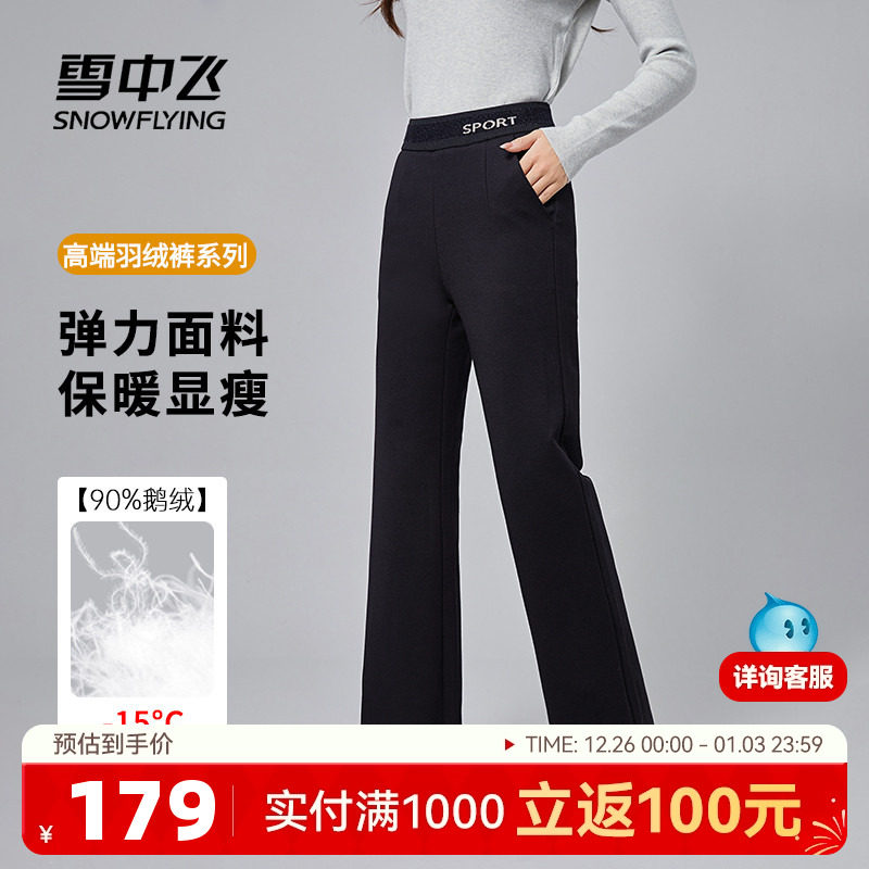 雪中飞25春秋新女高腰鹅绒羽绒裤黑色保暖护膝抗寒休闲百搭微喇