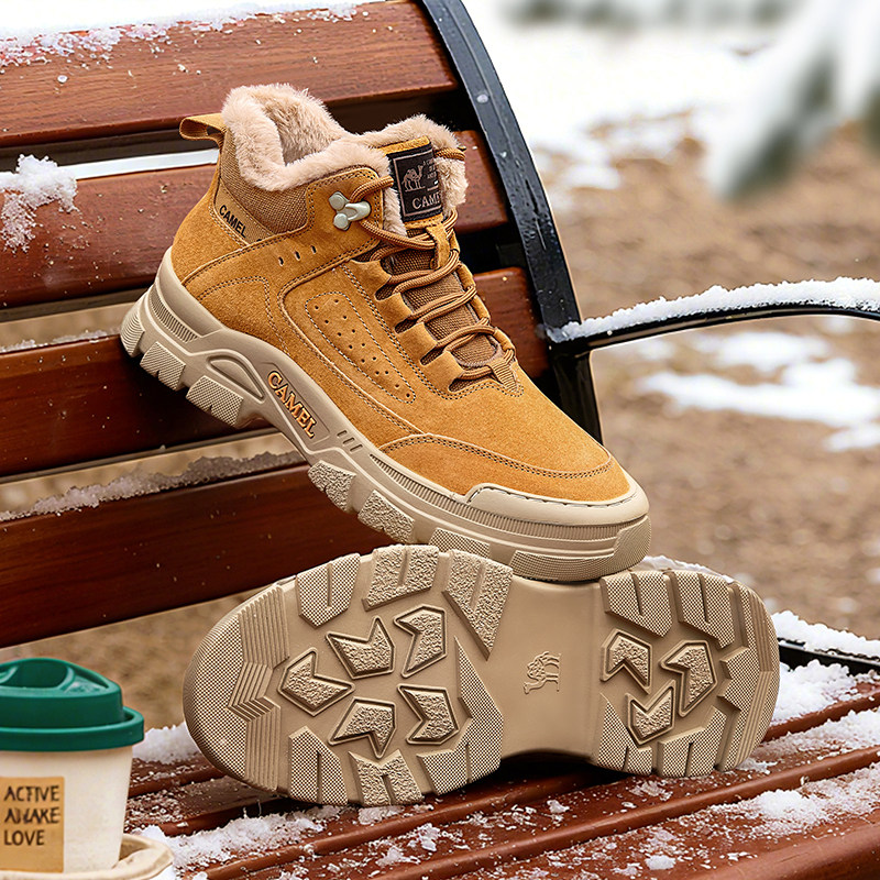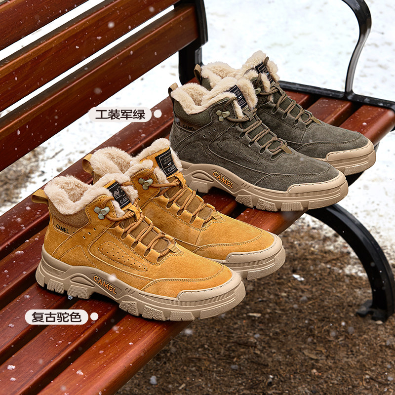 骆驼雪地靴男2025冬季加绒保暖马丁靴加厚休闲棉鞋防滑高帮工装靴