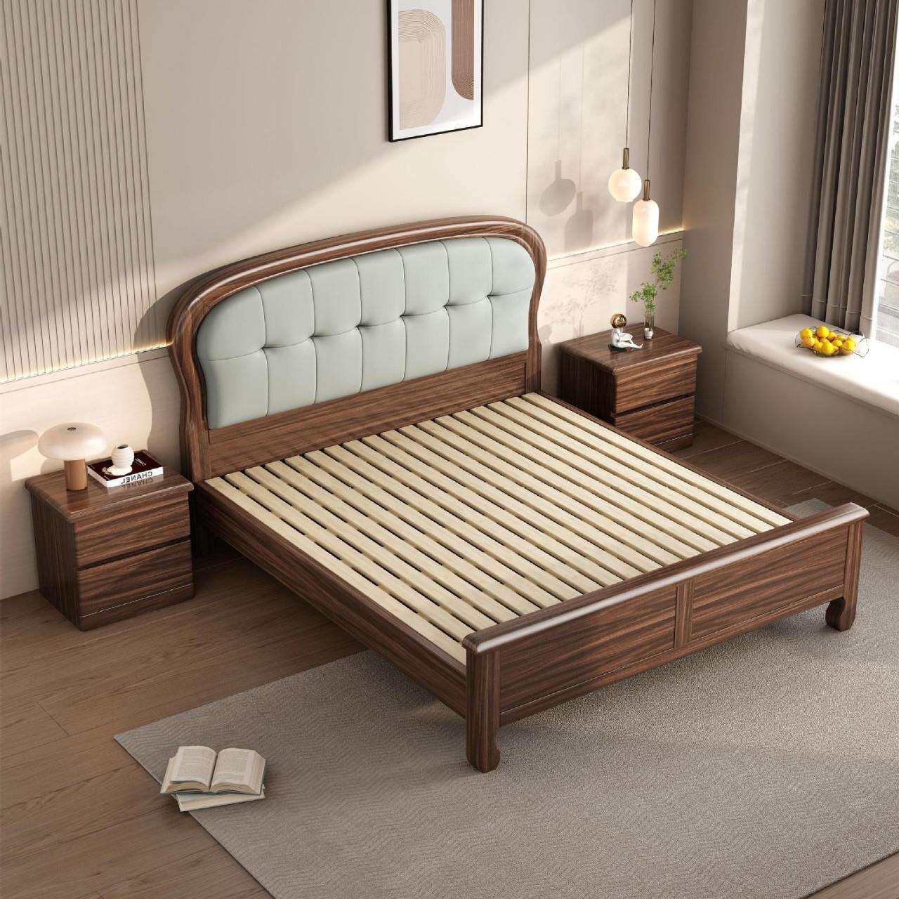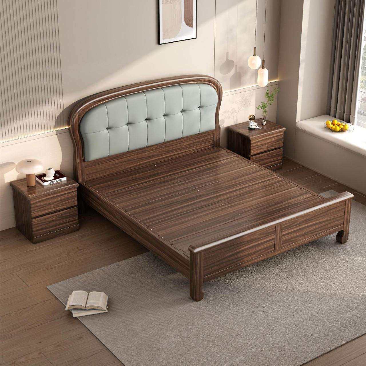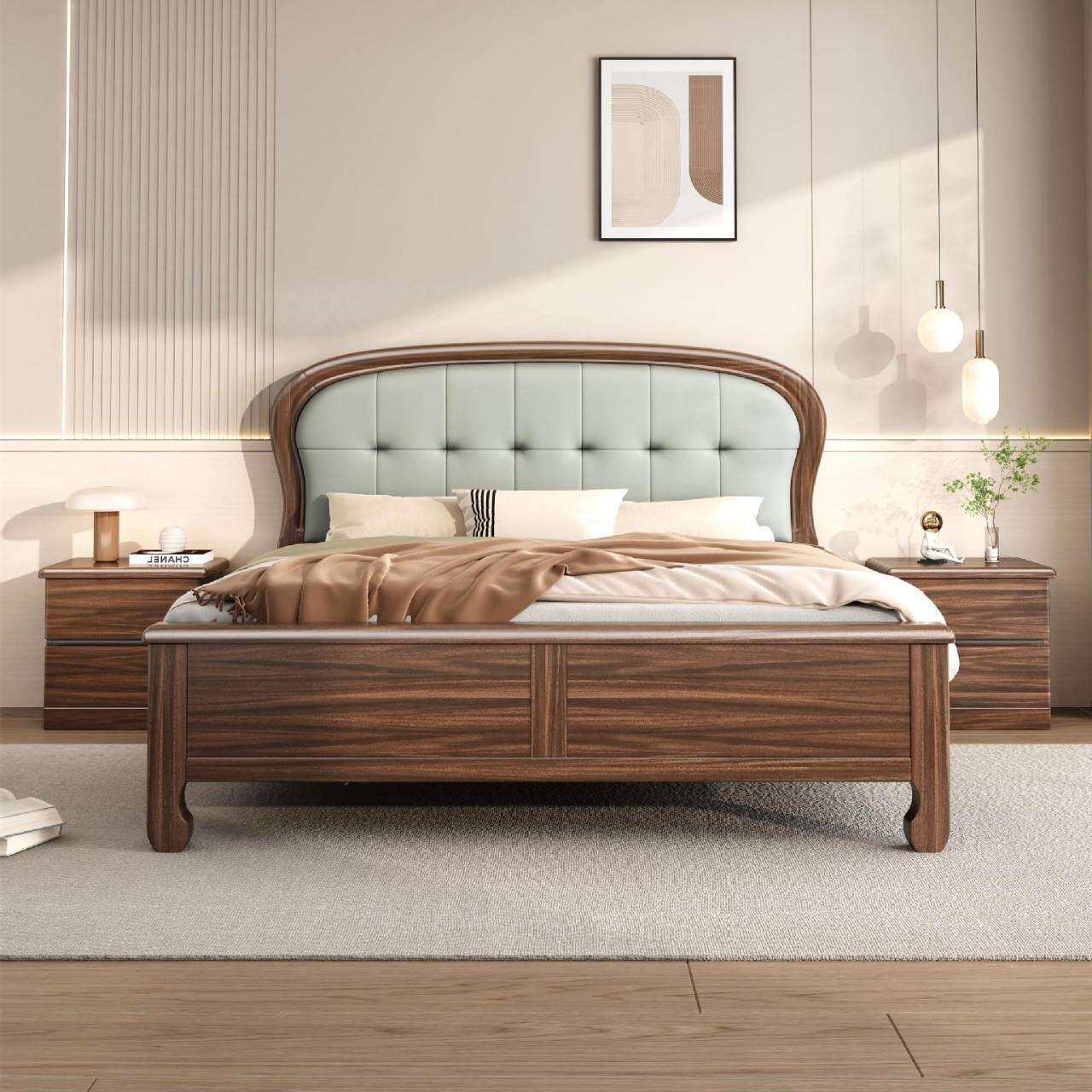 北美黑胡桃床全实木床主卧1.8m米双人床现代简约主卧家具工厂直供
