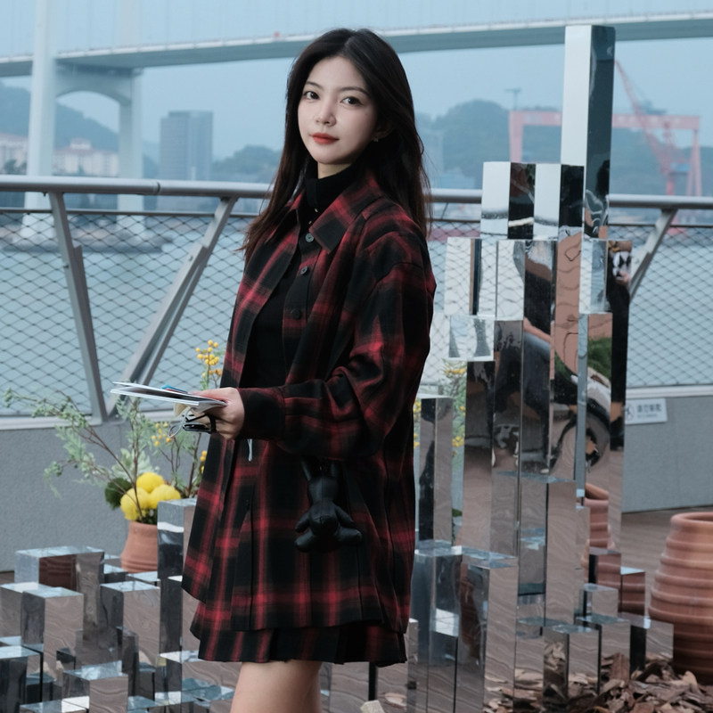 MSLAN秋冬美式复古红色格纹半身裙时髦A字型短裙MECN8103