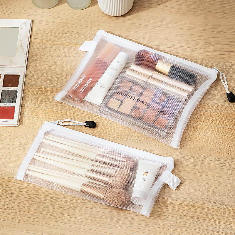 网纱化妆包洗漱收纳包便携式收纳袋整理包零钱笔袋证件袋口红网格