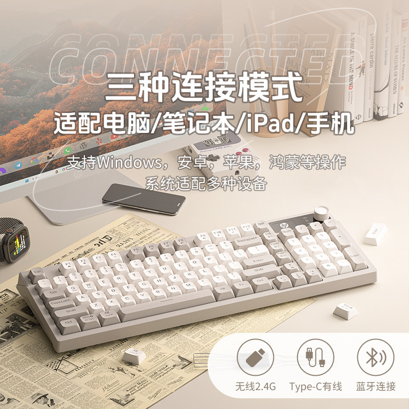 惠普官方机械手感键盘游戏电竞专用无线三模台式电脑通用男生女生