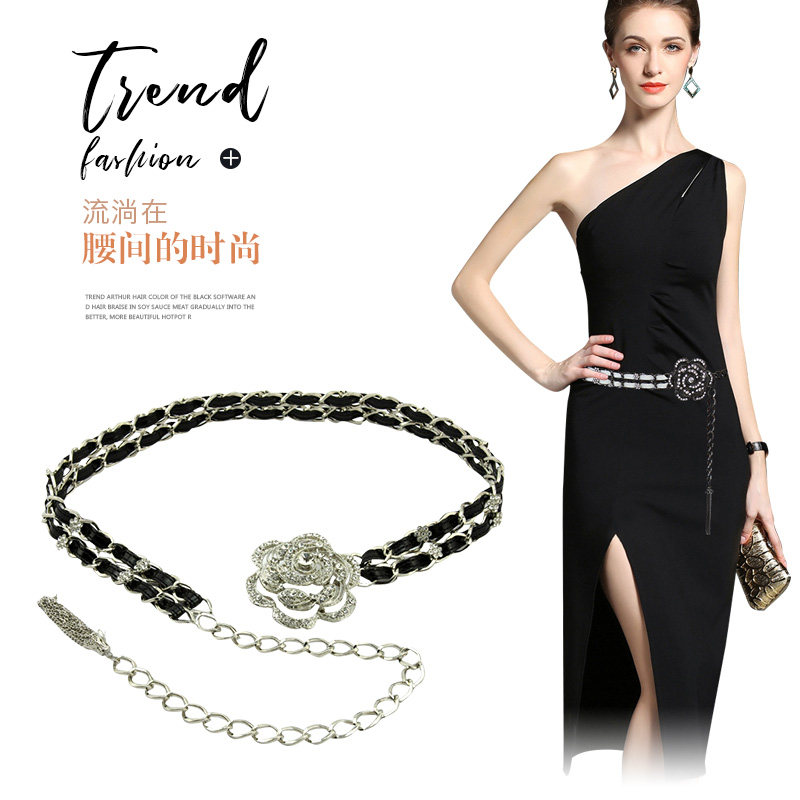 韩版百搭水钻细腰带女配裙子大衣装饰腰饰金属流苏腰链2024新款潮