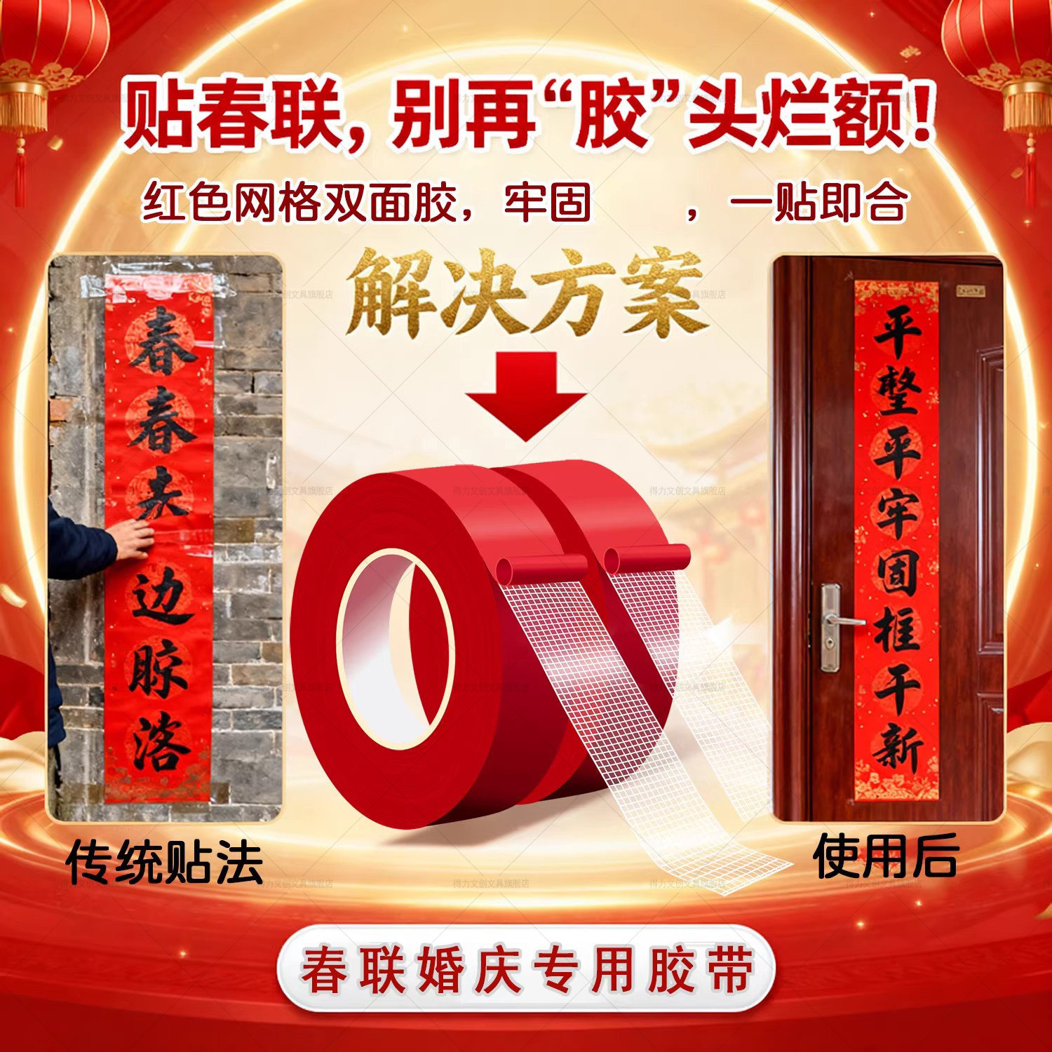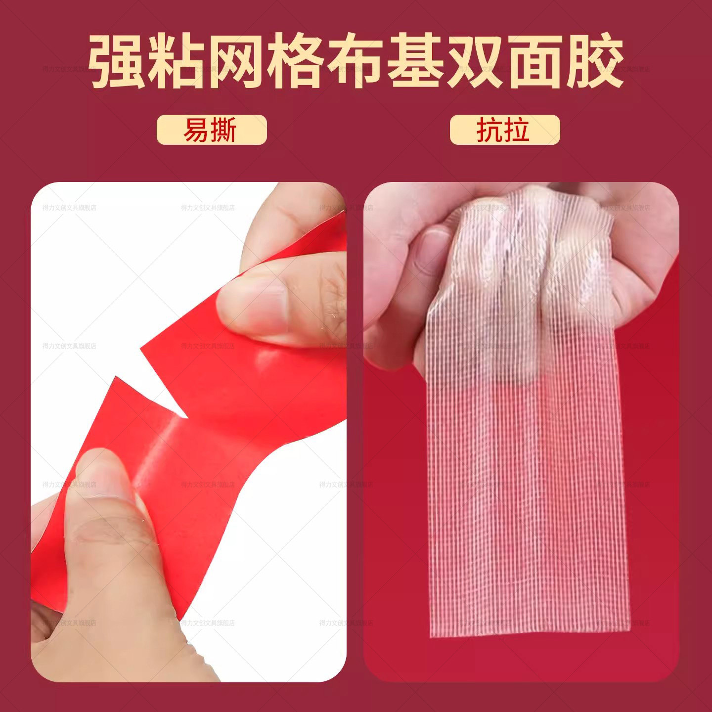 得力春联无痕胶对联专用网格双面胶不留痕高粘度门对强力固定贴粘地毯防水透明墙面地板地垫革布基胶带免打孔