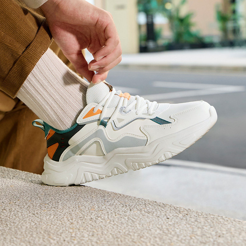 鸿星尔克男鞋运动鞋桀骜皮面秋冬款休闲鞋青少年软底老爹鞋跑步鞋