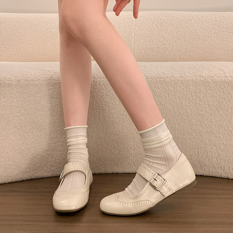 法式平底浅口单鞋女款2026新款春季配裙子布洛克玛丽珍女鞋子百搭