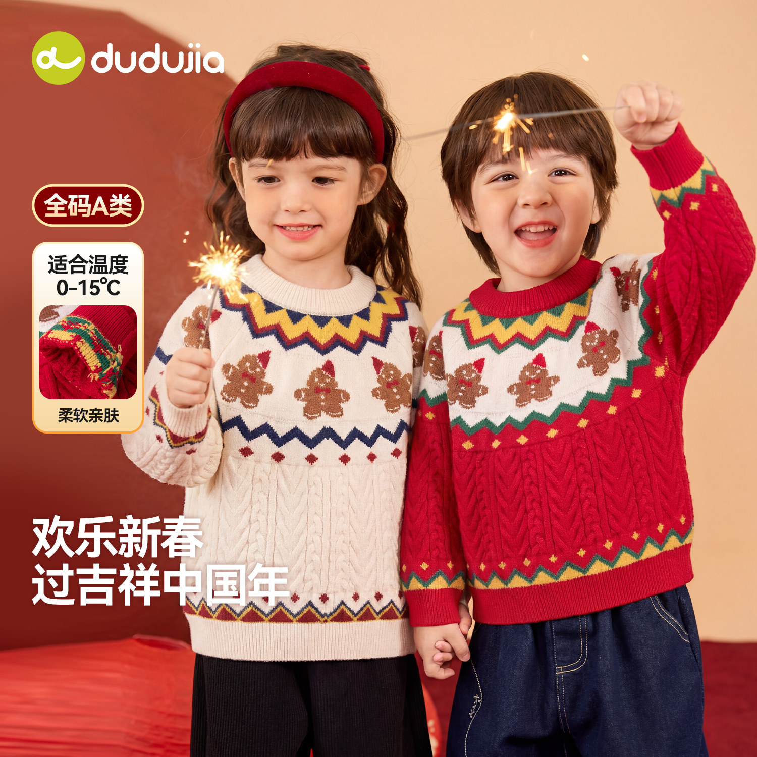 嘟嘟家儿童唐装冬季女童过年装红色衣服男童拜年服新年装毛线童装