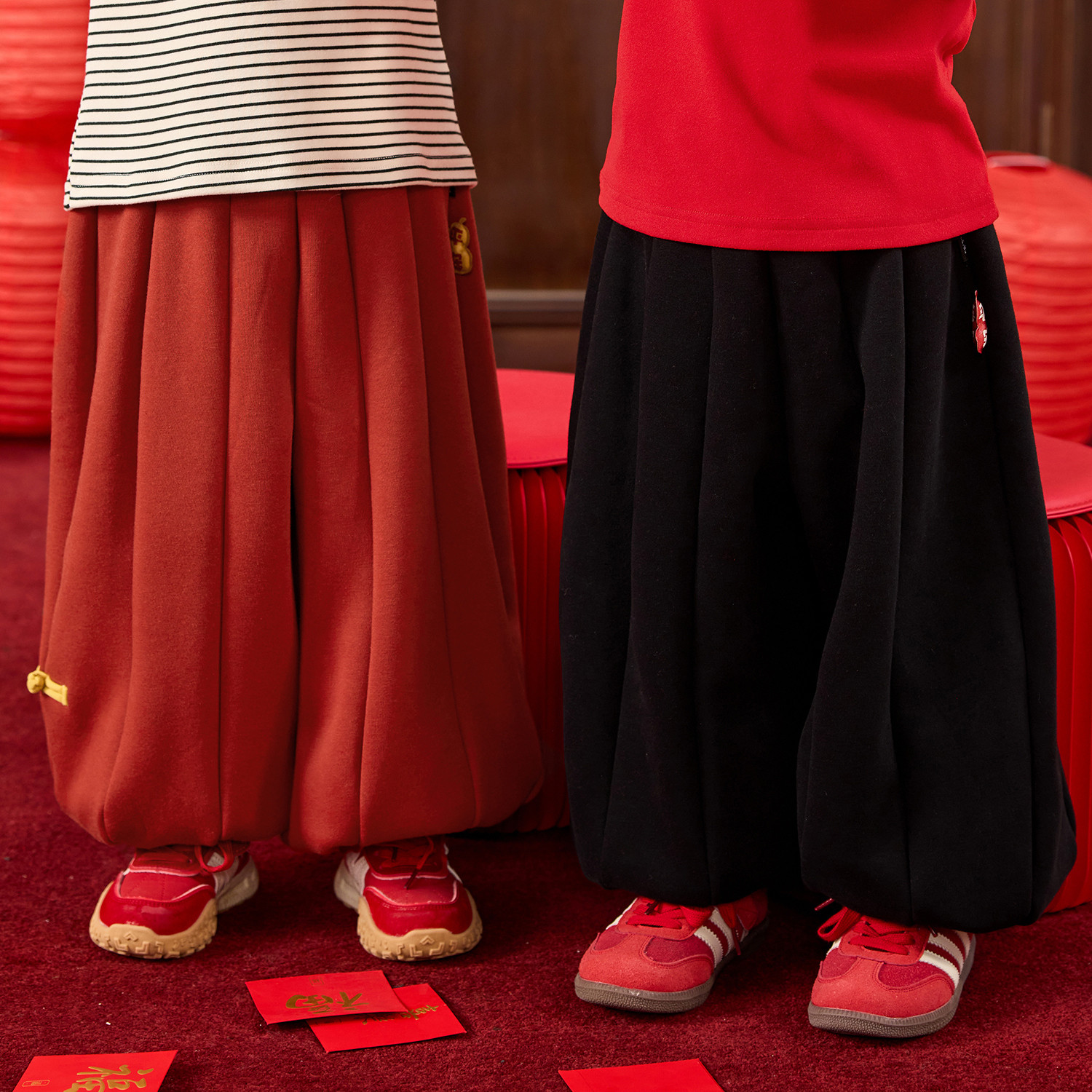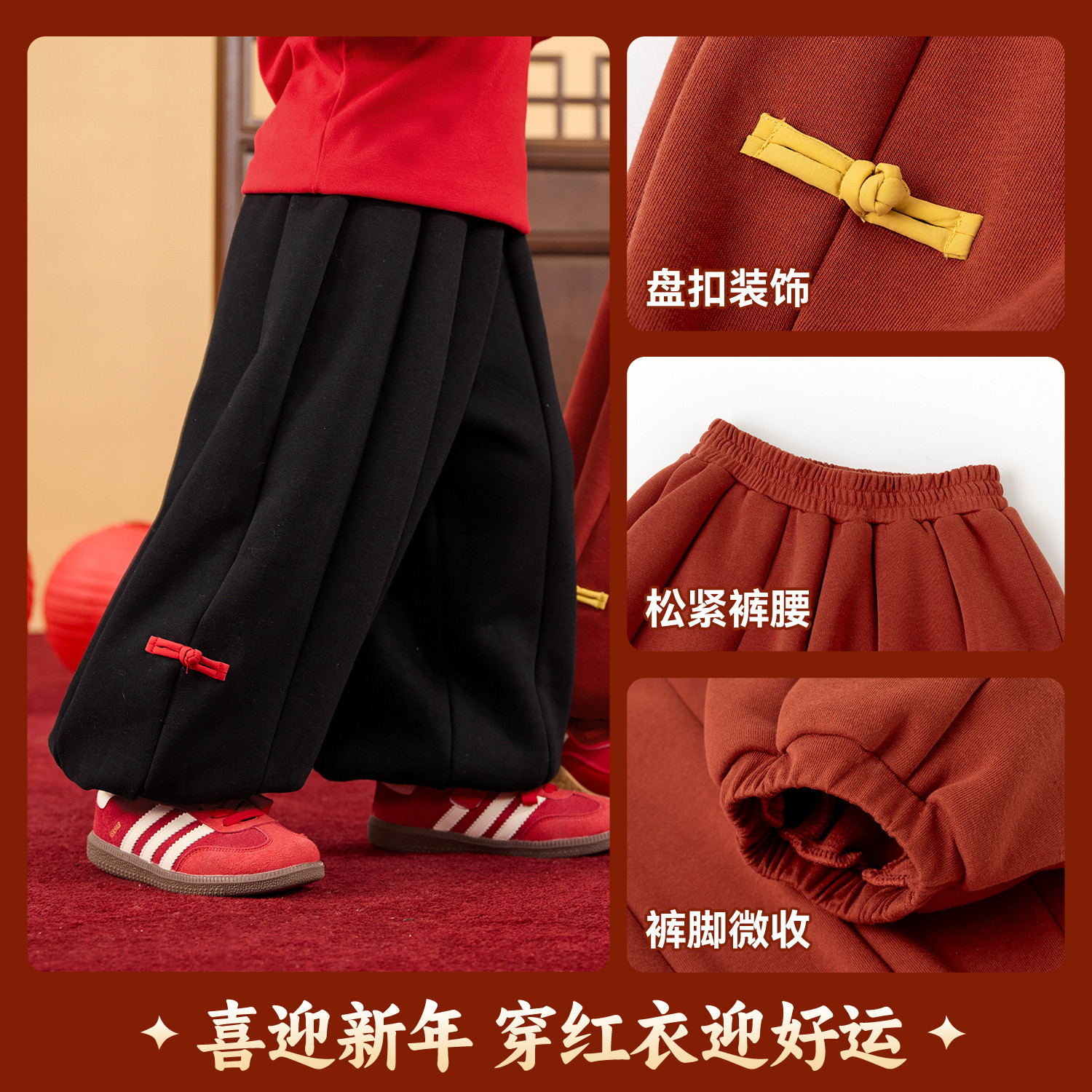 嘟嘟家宝宝裤子冬季儿童拜年服加绒加厚唐装男童年装喜庆女童长裤