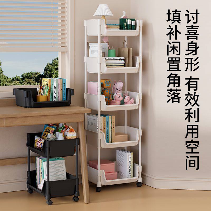 移动书架置物架落地零食多层带轮客厅儿童书柜小推车收纳厨房玩具