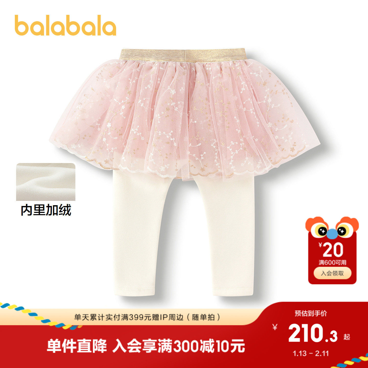 【minkmui联名商场同款】巴拉巴拉女童打底裤加绒网纱裙裤2025冬