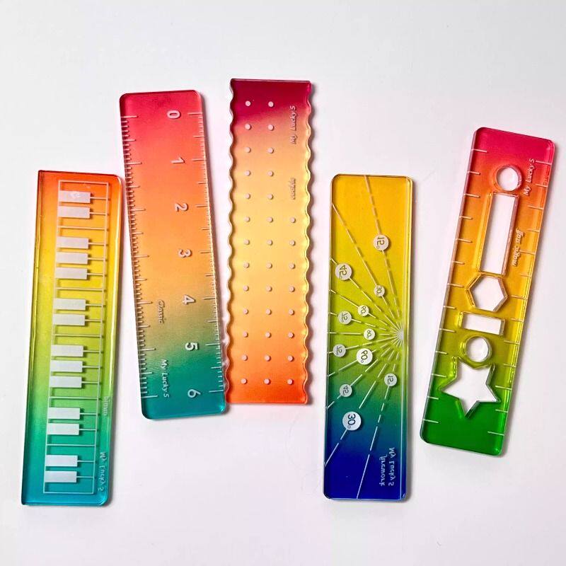 称心如意尺掌心尺糖果色m5手帐本迷你多功能刻度尺透明波浪直尺子手抄报初中生透明波浪直尺子套装小学生专用