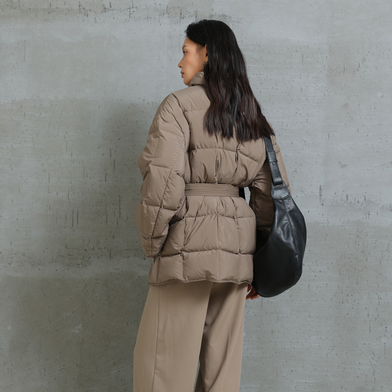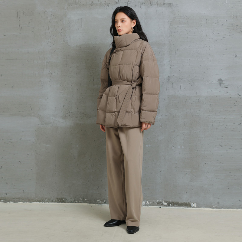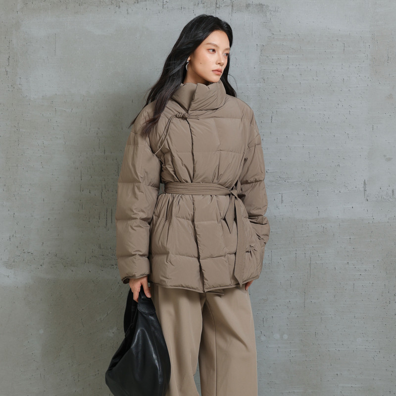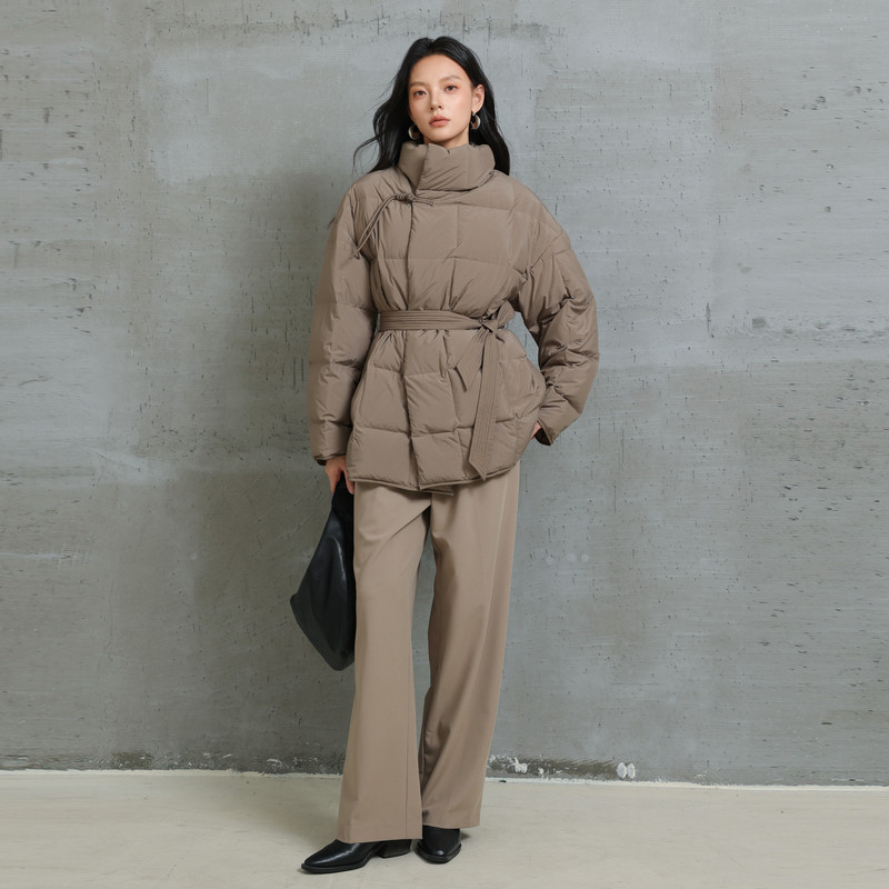 AIRIQI冬季新款新中式高领方格白鸭绒盘扣收腰羽绒服女AX44YR025