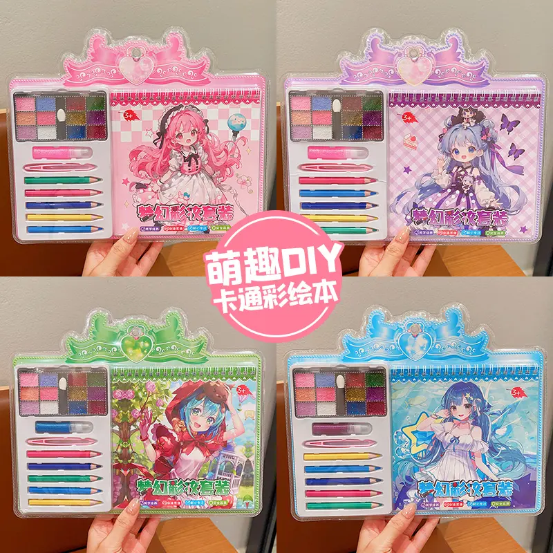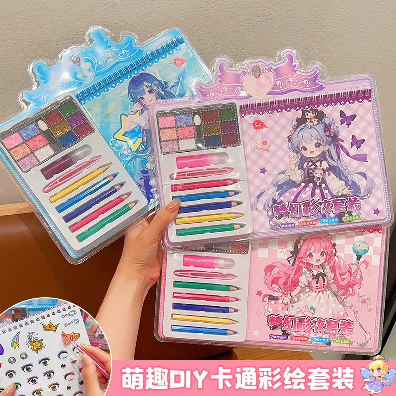 彩绘画本儿童水彩妆画涂鸦绘画本diy涂色公主化妆填色涂颜色画本