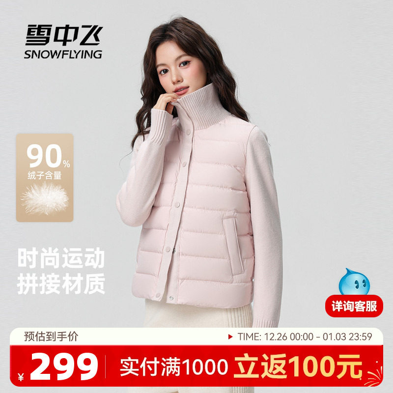 雪中飞2025冬新款羽绒服女士拼接甜美运动时尚大领子保暖韩系