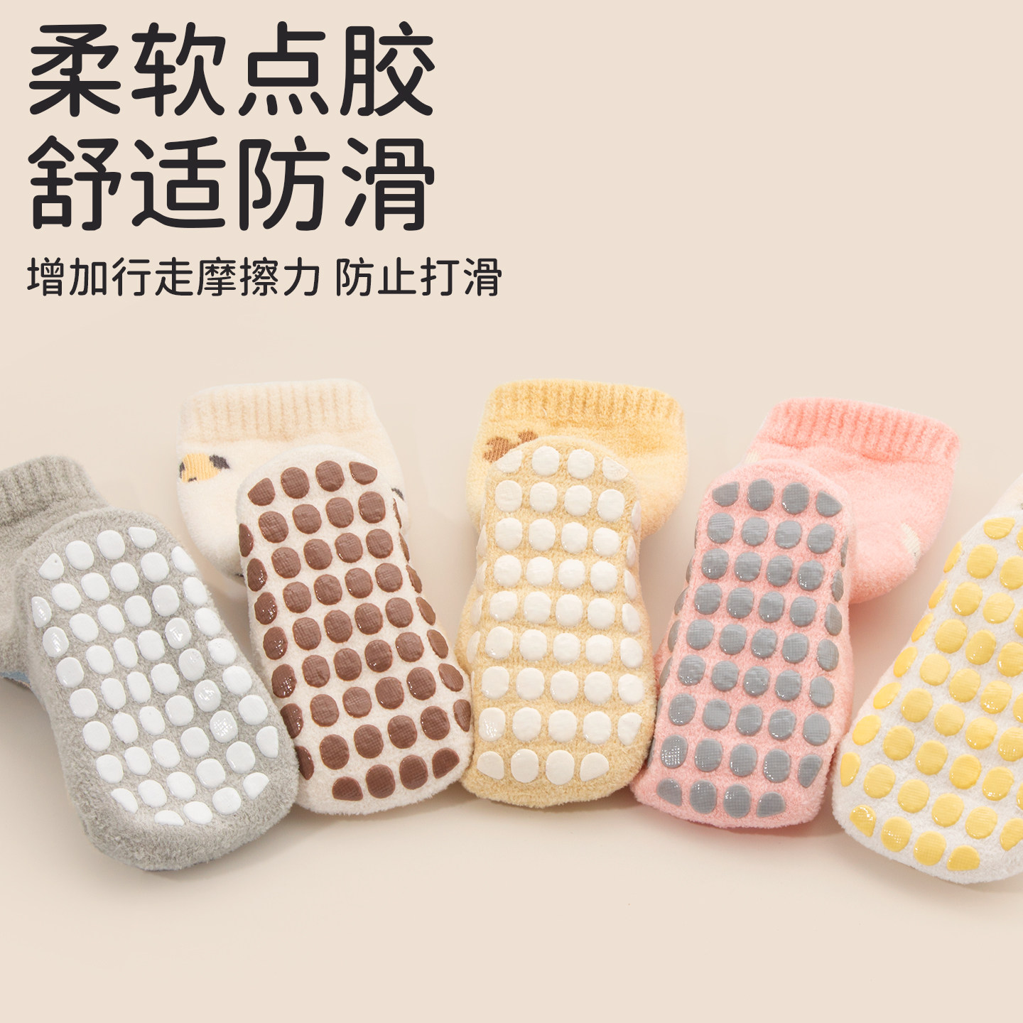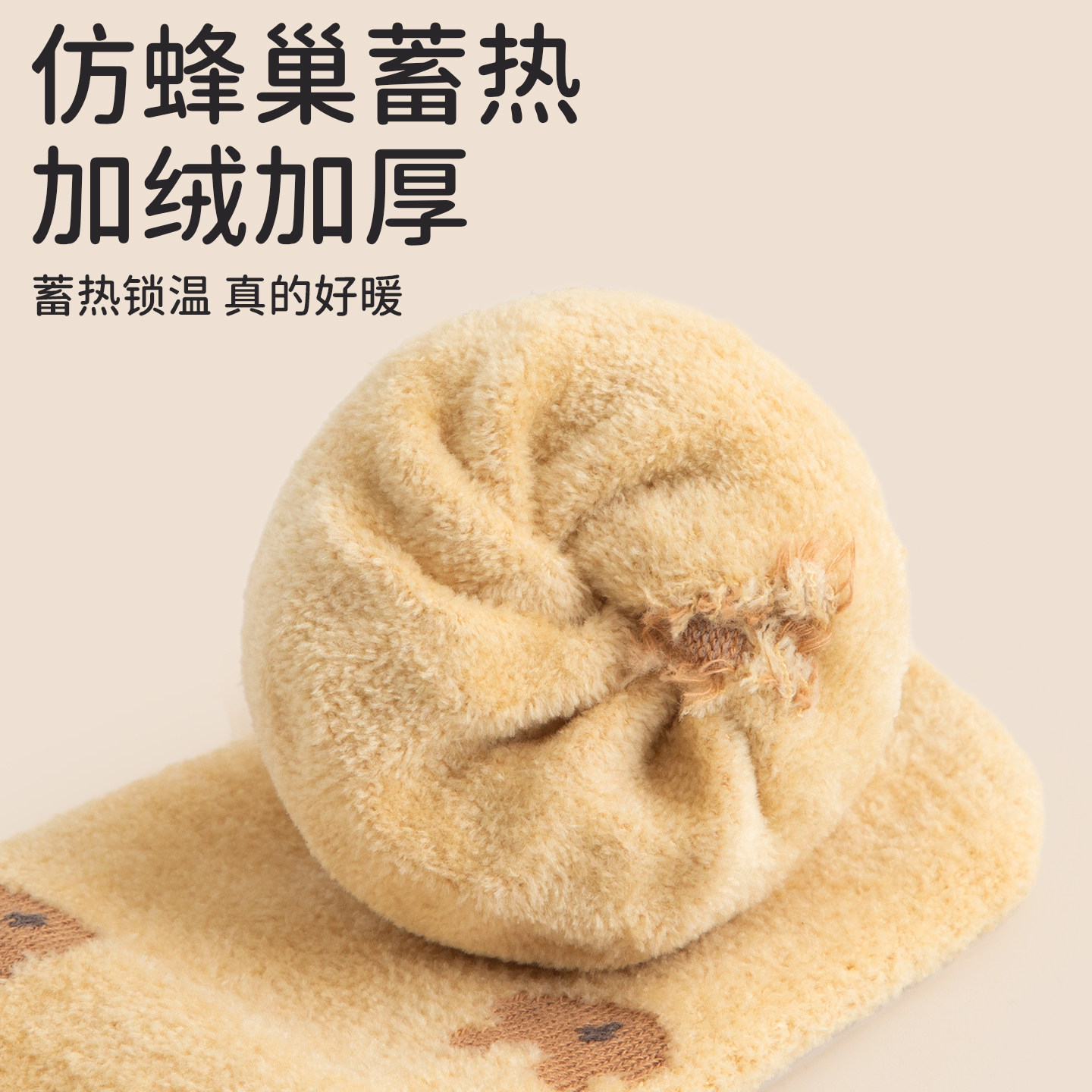 婧麒婴儿袜子秋冬季婴幼儿加厚保暖地板袜宝宝防滑隔凉软底中筒袜