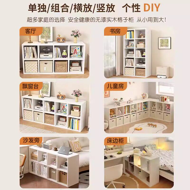 实木书架置物架落地靠墙组合格子柜客厅幼儿园储物收纳矮家用书柜