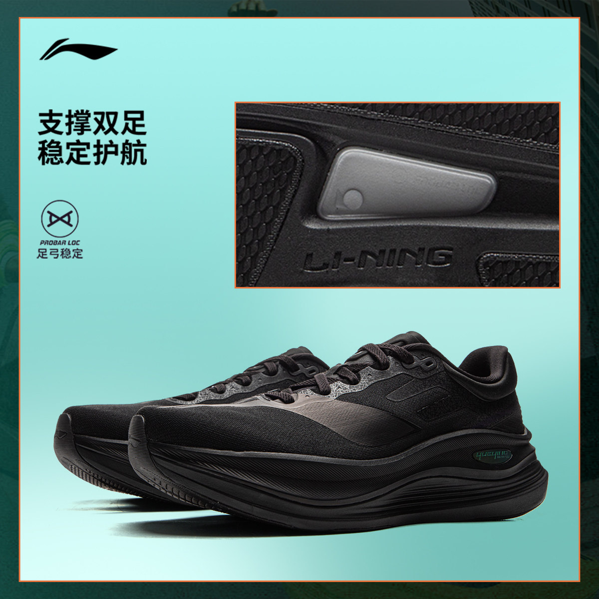 李宁越影Element丨 跑步鞋男支撑保护减震透气网面黑色轻便运动鞋