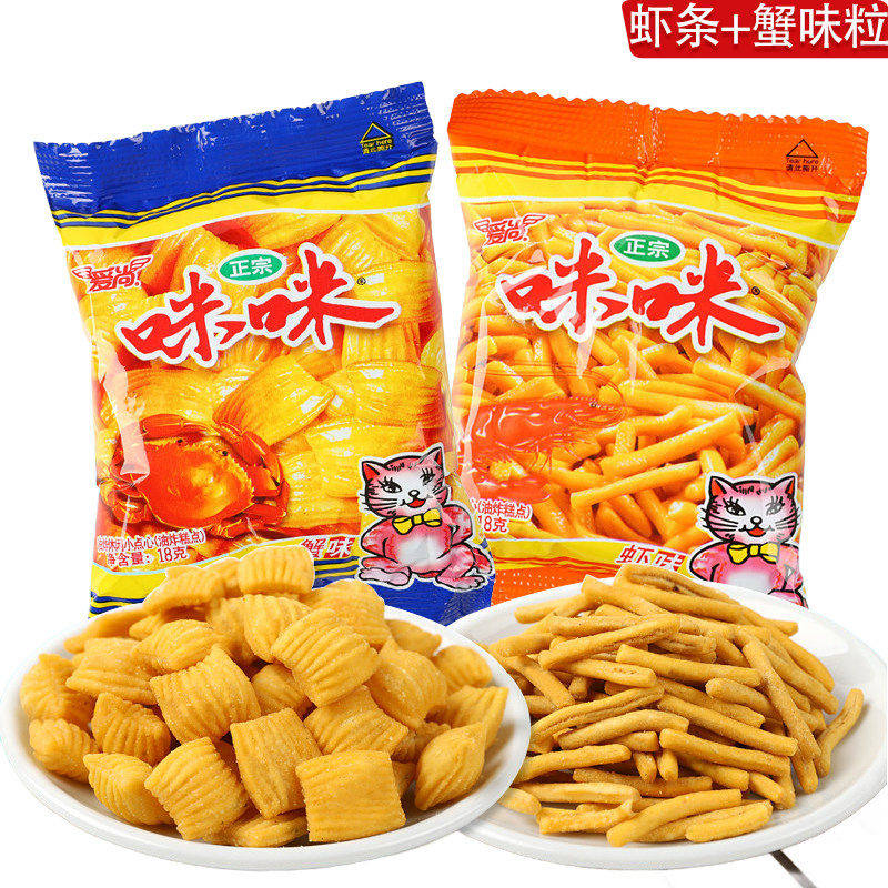 爱尚咪咪虾条蟹味粒小包装怀旧经典休闲零食品好吃夜宵办公室薯片