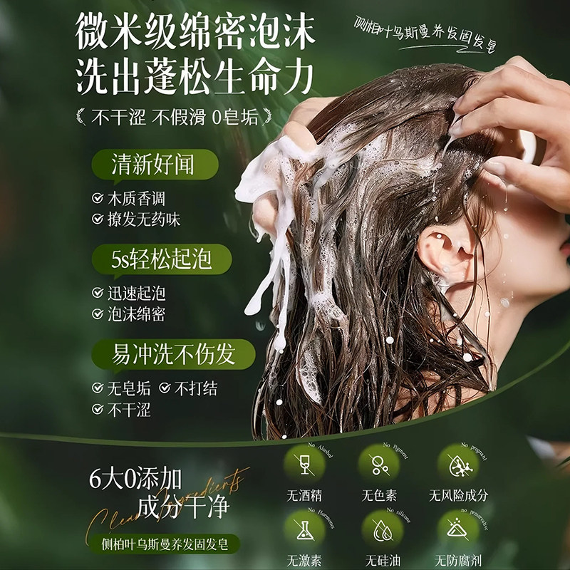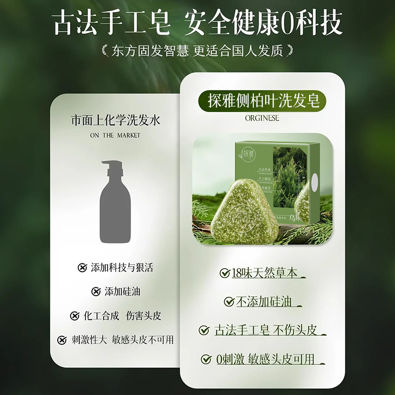 侧柏叶洗发皂手工皂洗头皂何首乌养发固发控油去屑皂