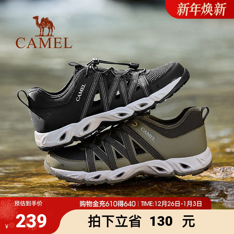 骆驼男鞋2025春夏轻量排水透气软弹免系水陆两栖溯溪鞋