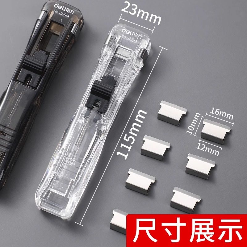 得力推夹器文件小夹子文具固定试卷神器订书机装订金属钉票据书本纸张办公用品推推夹书助推燕尾透明补充工具