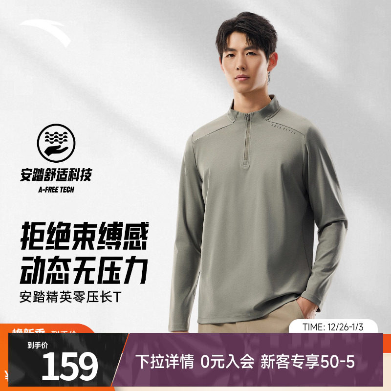 安踏零压T半拉链立领速干长T男款冬季长袖针织衫商务休闲官方上衣