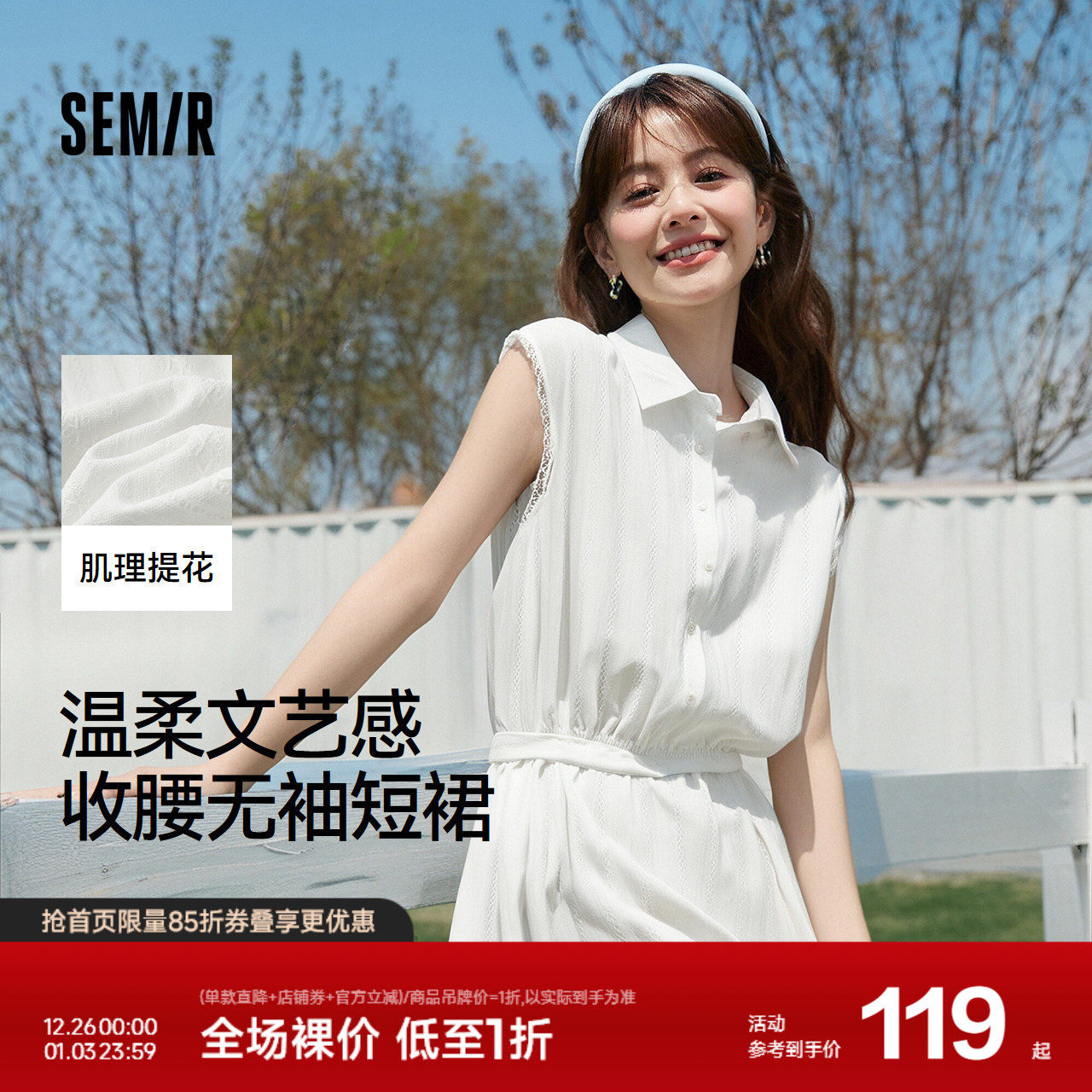 森马连衣裙女设计感肌理文艺夏季2025新款蕾丝收腰无袖短裙温柔系