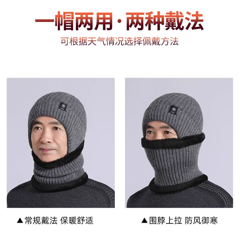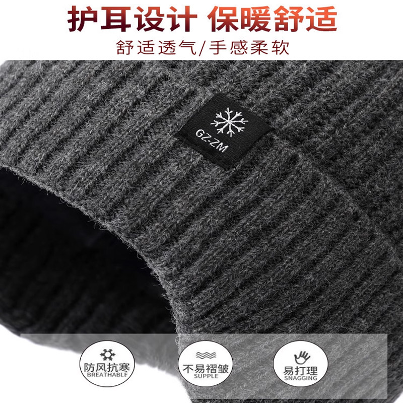 男士冬季帽子中老年人护耳老人保暖加厚爷爷加绒针织爸爸毛线帽