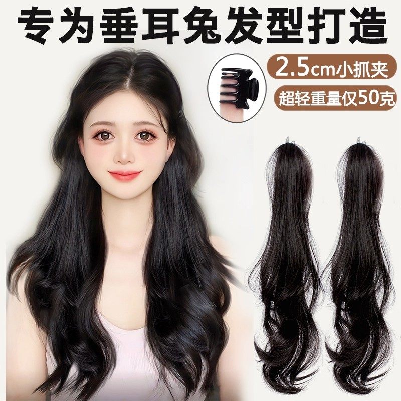 垂耳兔假发双马尾抓夹长卷发自然长辫子发型公主头假发辫马尾真发